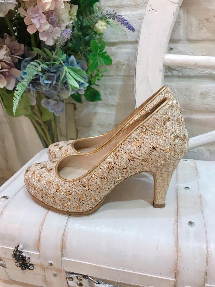 ゴールドのラメが全体にあしらわれた、キラキラと華やかなパンプス。ゴールドカラーなのでどんなドレスとも相性抜群。パーティ・結婚式・2次会と様々なシーンで活躍する1足です。2.5cmのストーム×8cmヒールの前底プラットフォームパンプスなので長時間履いても足が疲れにくく、同時にスタイルアップも叶えてくれる優れモノ◎