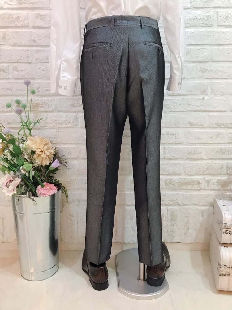 グレーのパンツは光沢感があり、暗めな色味でも華やかな印象です。とても上品な素材です。セットのジャケットと合わせれば挙式などにもお使い頂けるデザインとなっておりますので、前撮り写真撮影にもおすすめです。生地感はそれ程厚くないので、長時間着ていても負担は少ないと思います。披露宴のお色直し、二次会、1.5次会、リゾートウェディング、レストランウェディング、パーティー、様々なシーンでご利用頂けます。