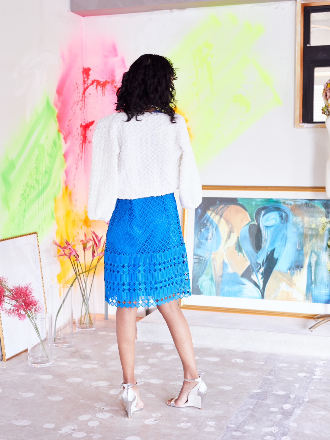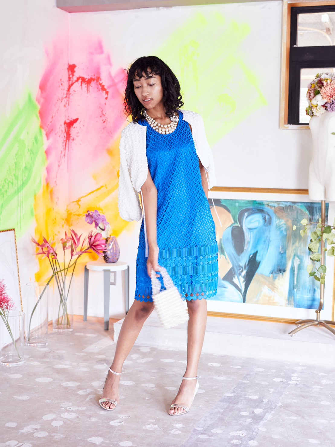 ロイヤルブルー肩ありドレス。タイトで大人っぽいデザイン。脇がひろいのでインナーを合わせるのがおすすめです。