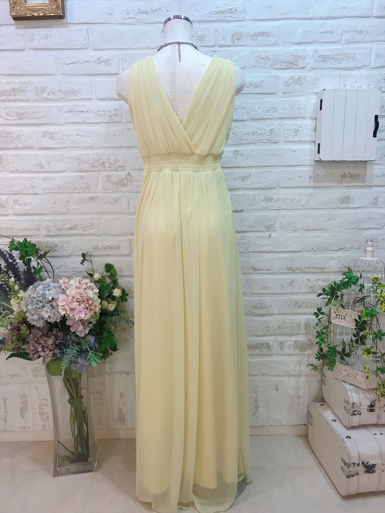 パステルイエロー肩ありロングドレス