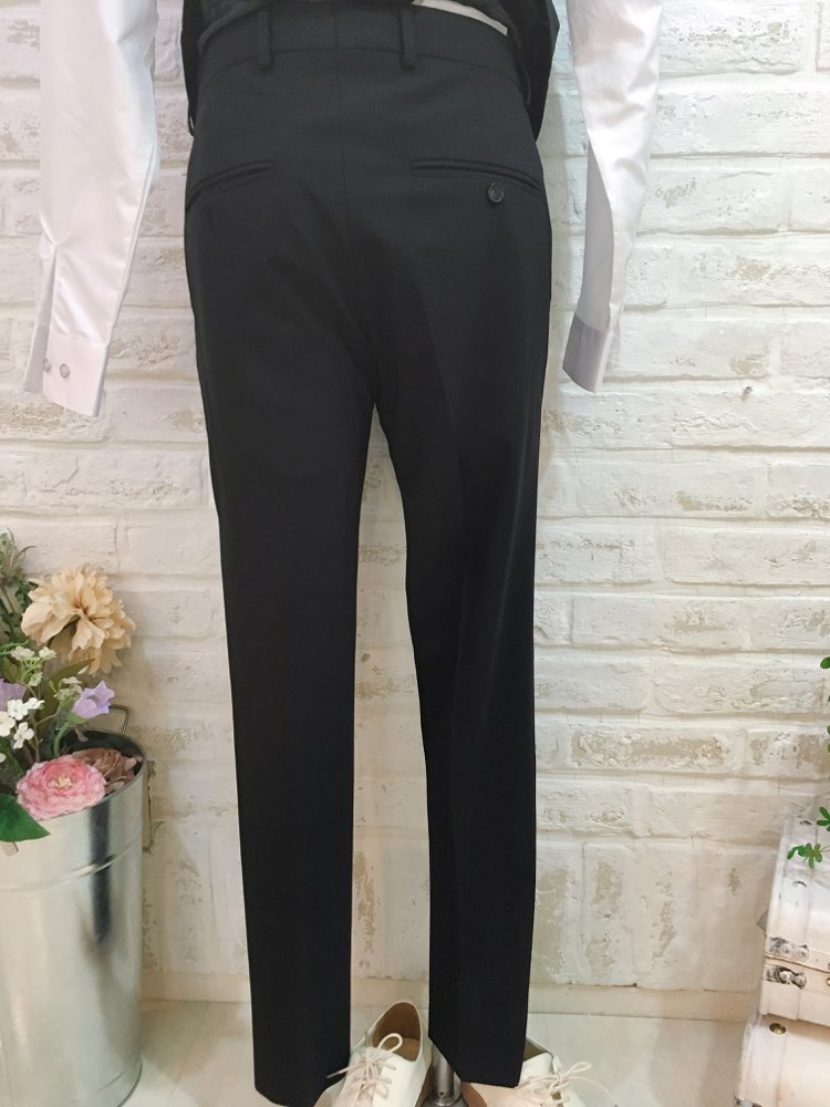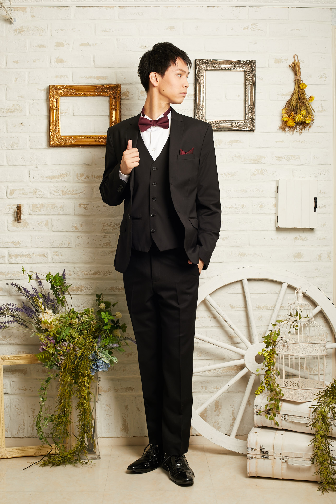 シンプルなブラックのパンツはとてもシンプルで着る人を選びません。マットな仕上がりで大人っぽいです。セットのジャケット、ベストを合わせればより一層華やかな印象になります。前撮り写真撮影にもおすすめです。生地感は柔らかく、厚くないので、長時間着ていても負担は少ないと思います。披露宴のお色直し、二次会、1.5次会、リゾートウェディング、レストランウェディング、パーティー、様々なシーンでご利用頂けます。シャツをチェック柄やストライプ柄、カラーシャツ、小物としてハットなど合わせてもおしゃれなコーディネートになります。また、ゲスト用タキシードとしてもご利用頂けます。