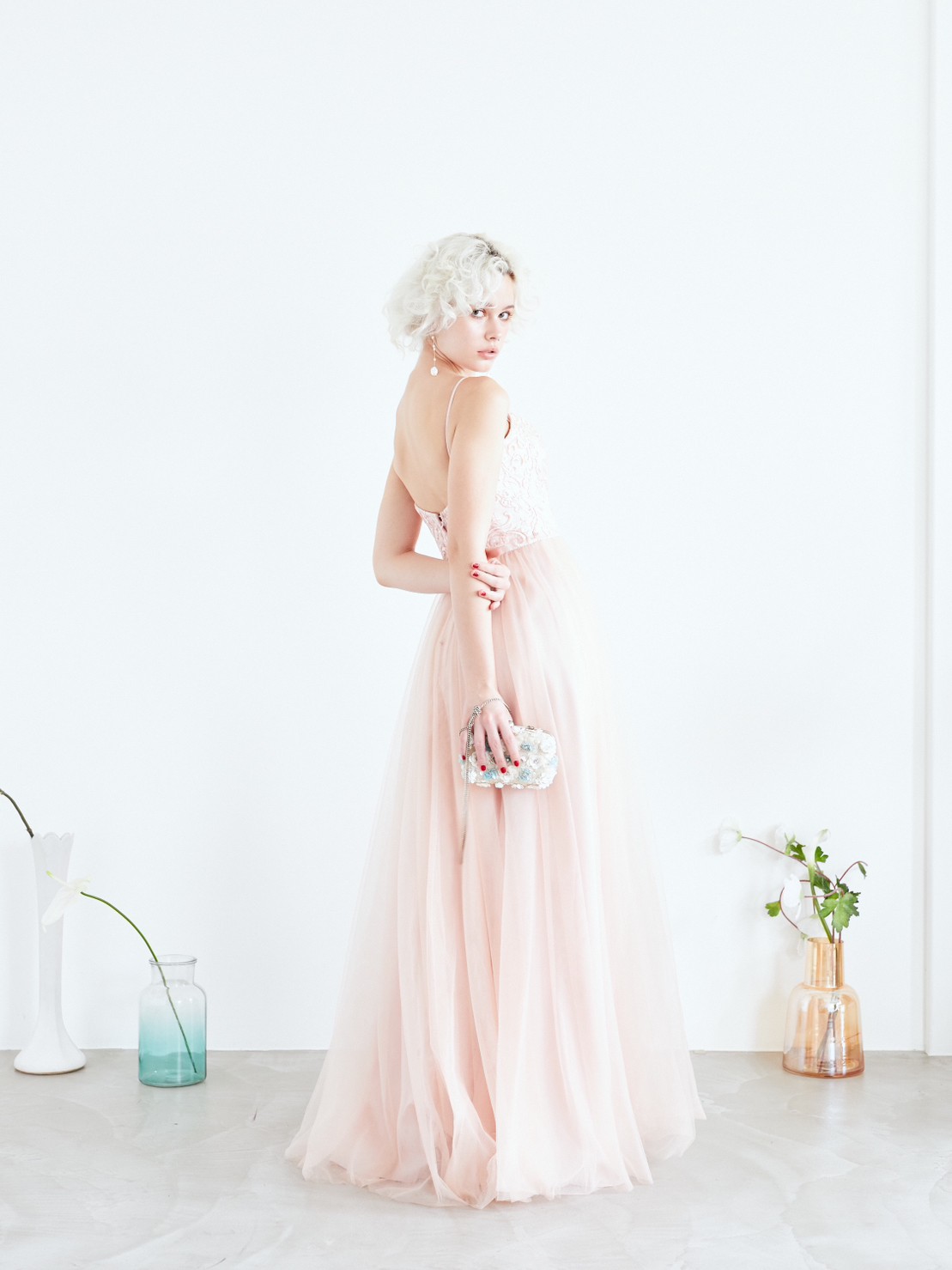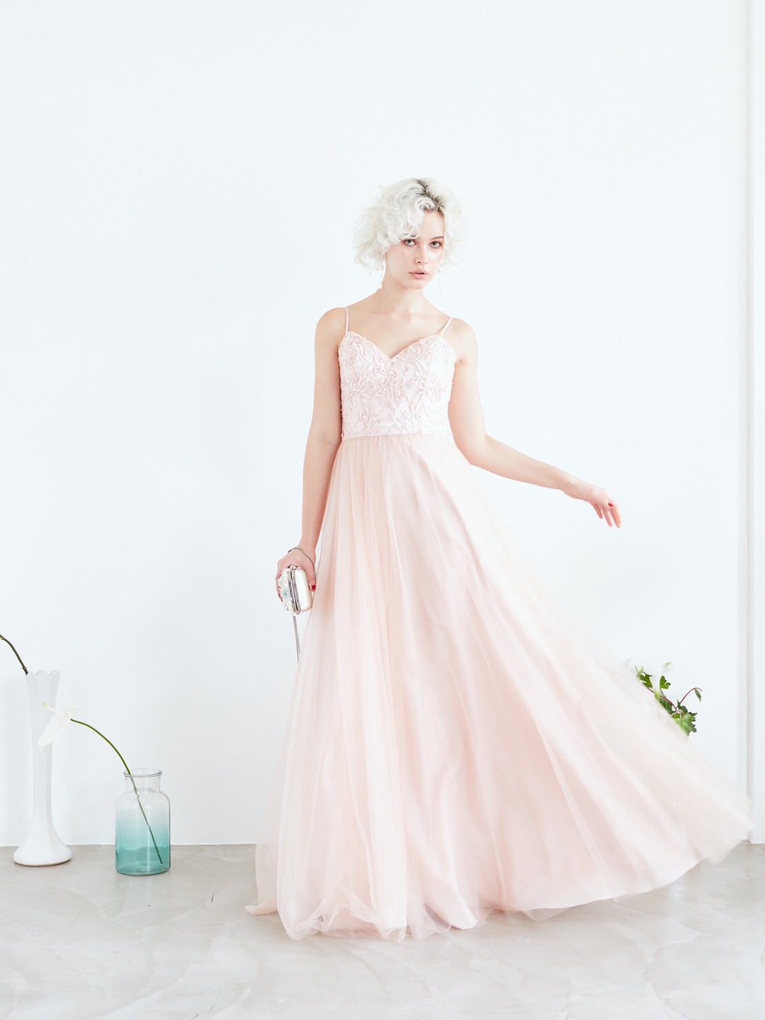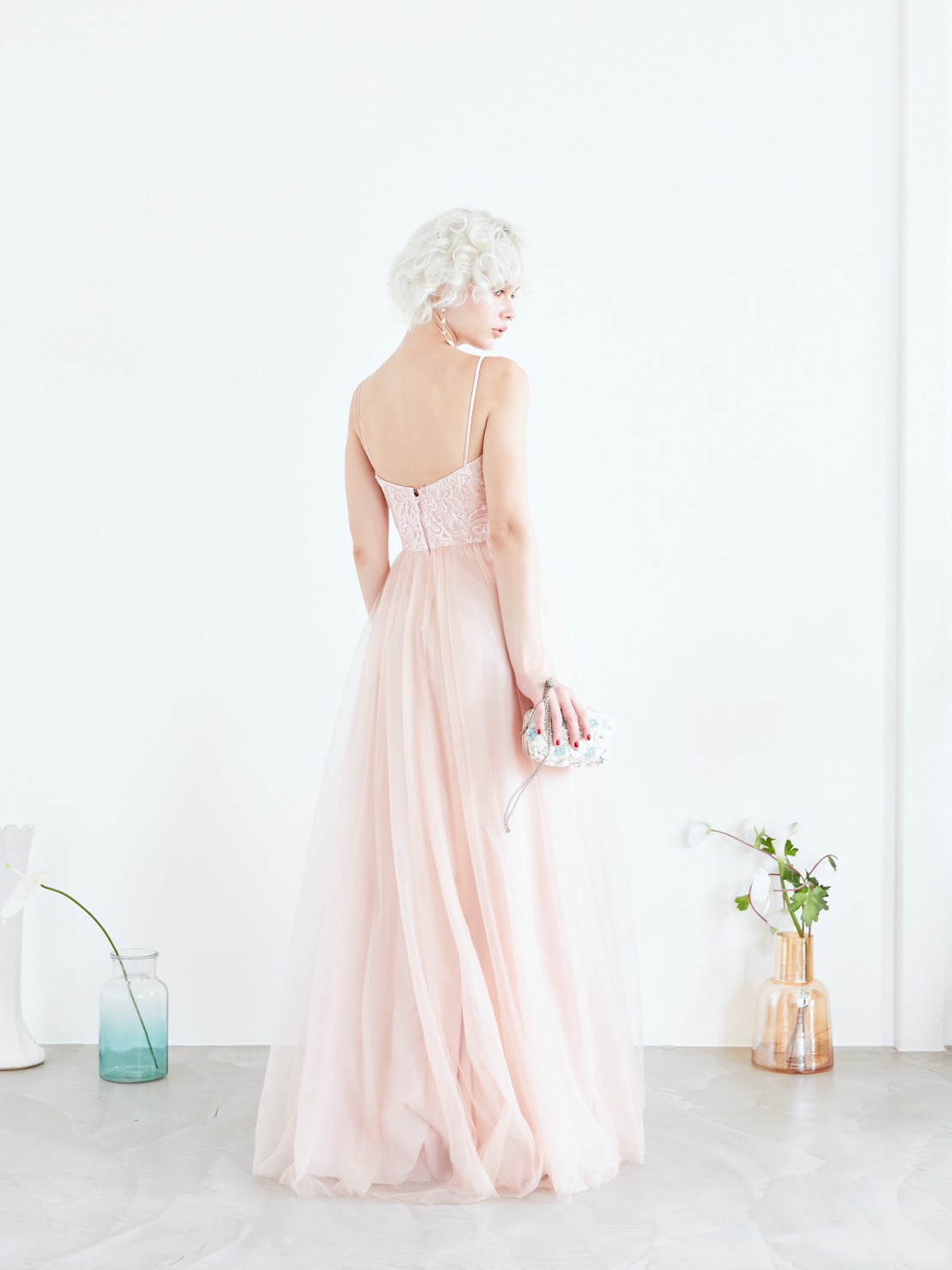 ピンクロングドレス。胸元はハートカットでスパンコールが有りキラキラしてます。スカート部分はチュール素材。