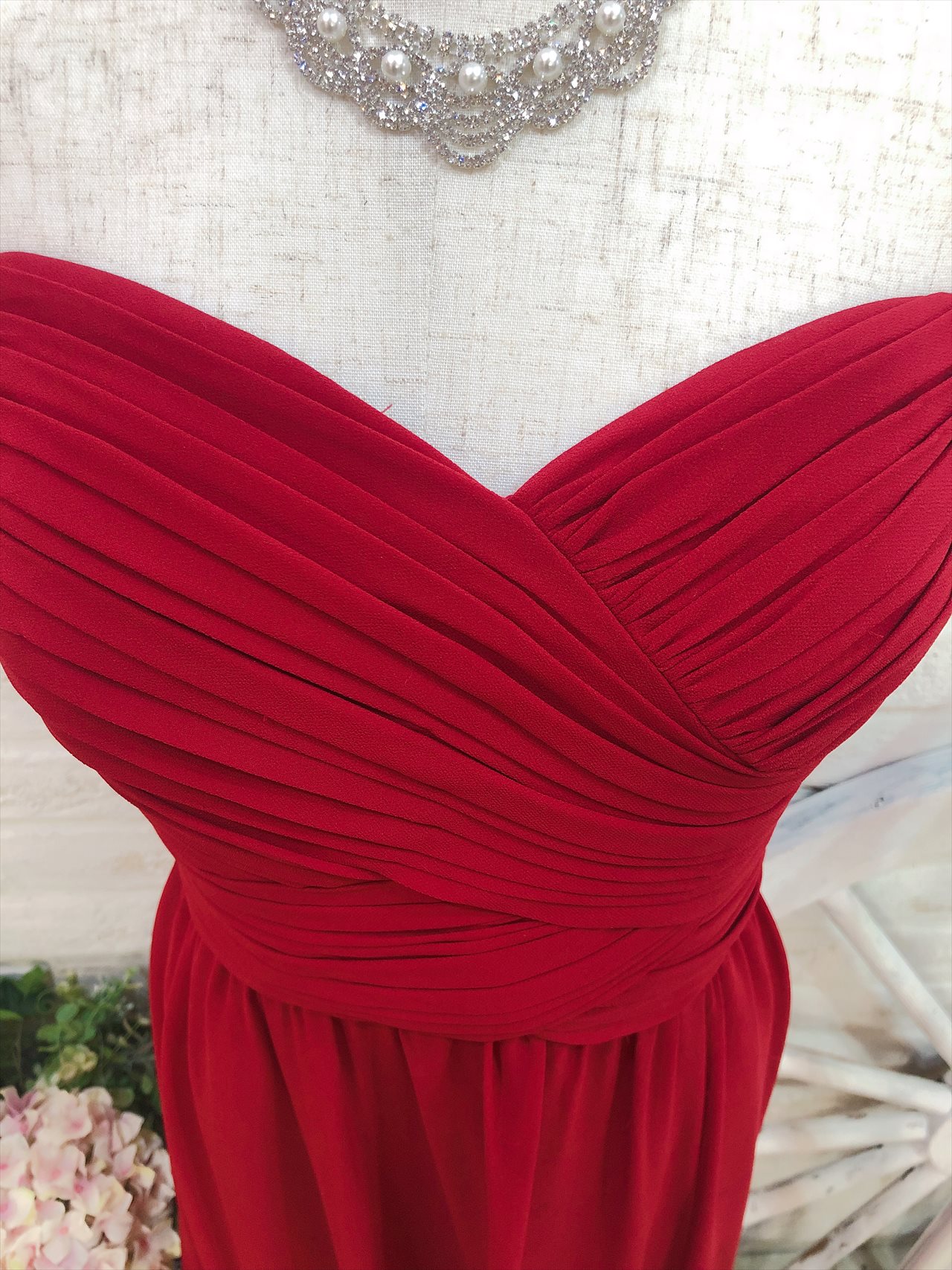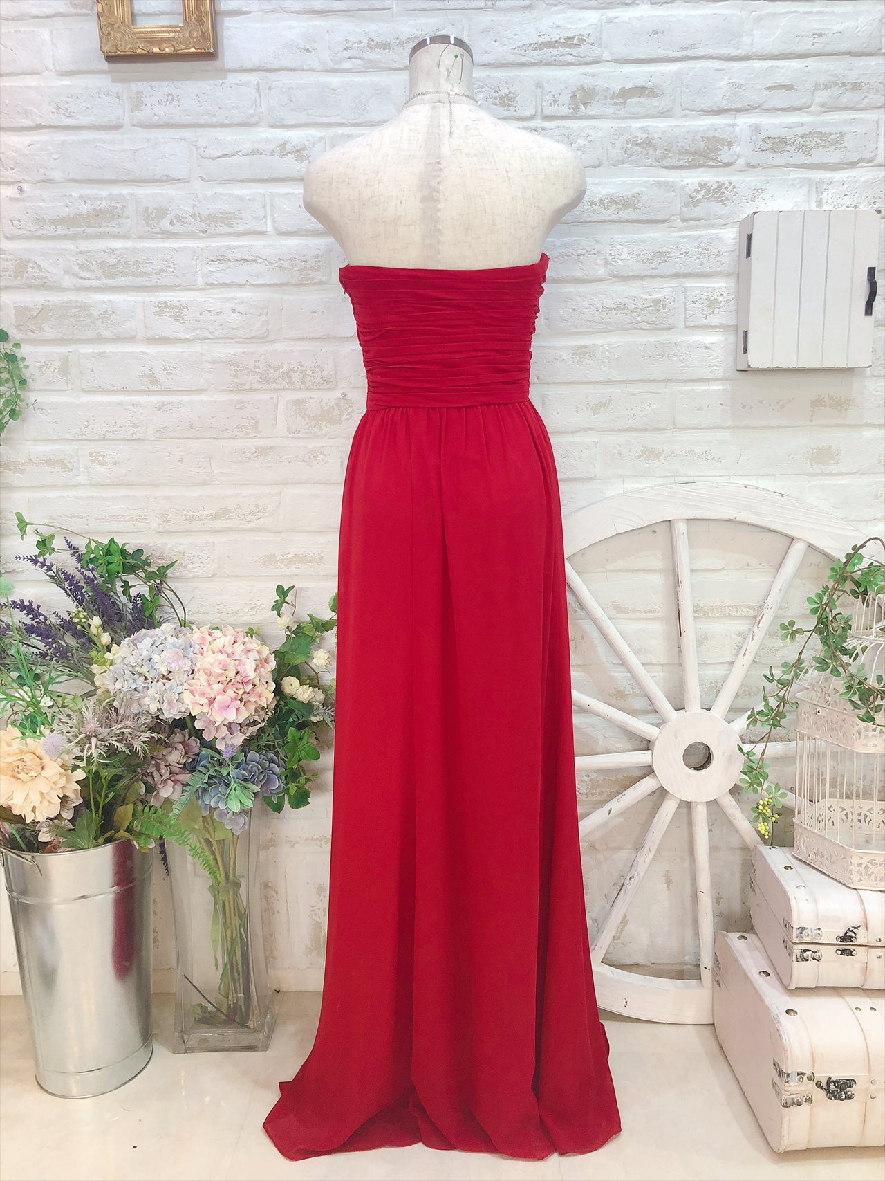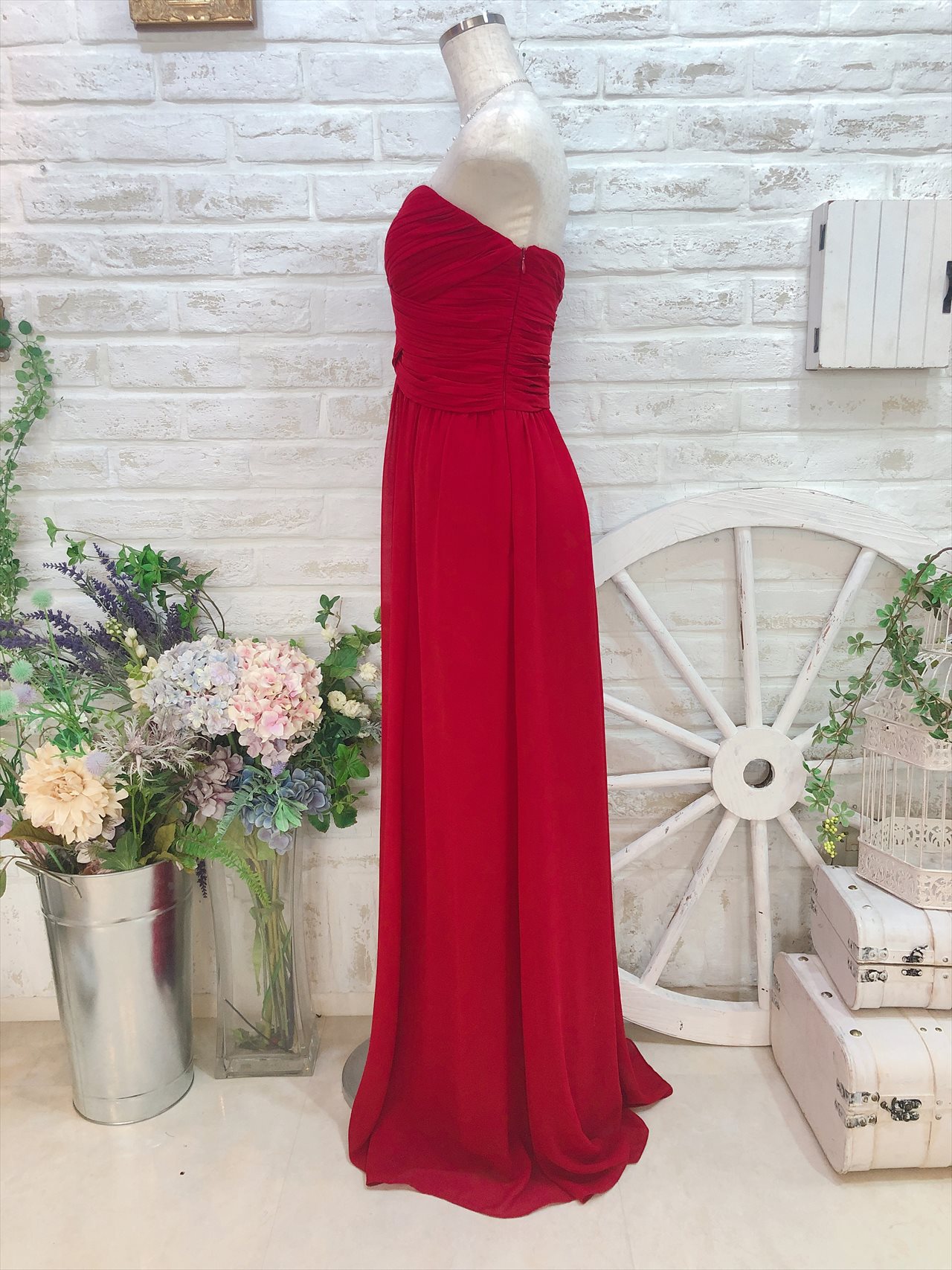 真っ赤なロングベアドレス。大人っぽくきめたい方にお勧めなドレスです。