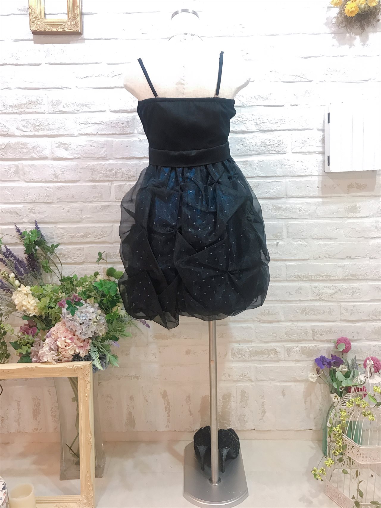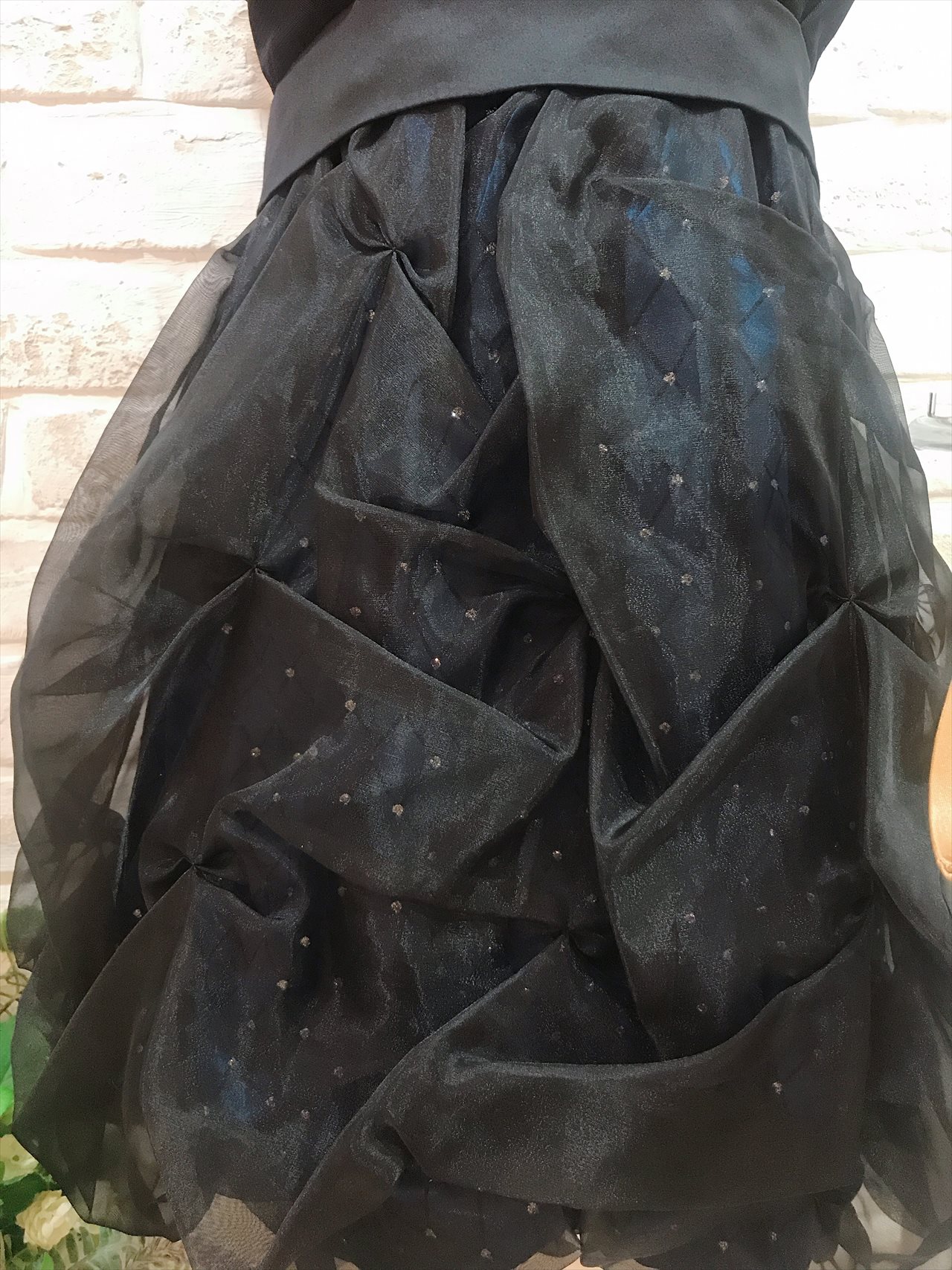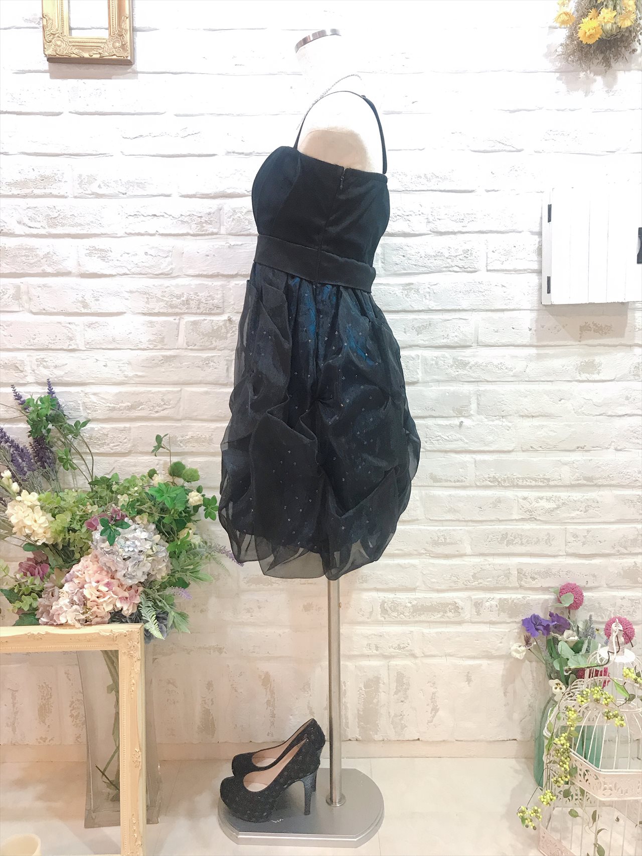 ネイビーバルーンオーガンジースカートミニ丈ベアドレス