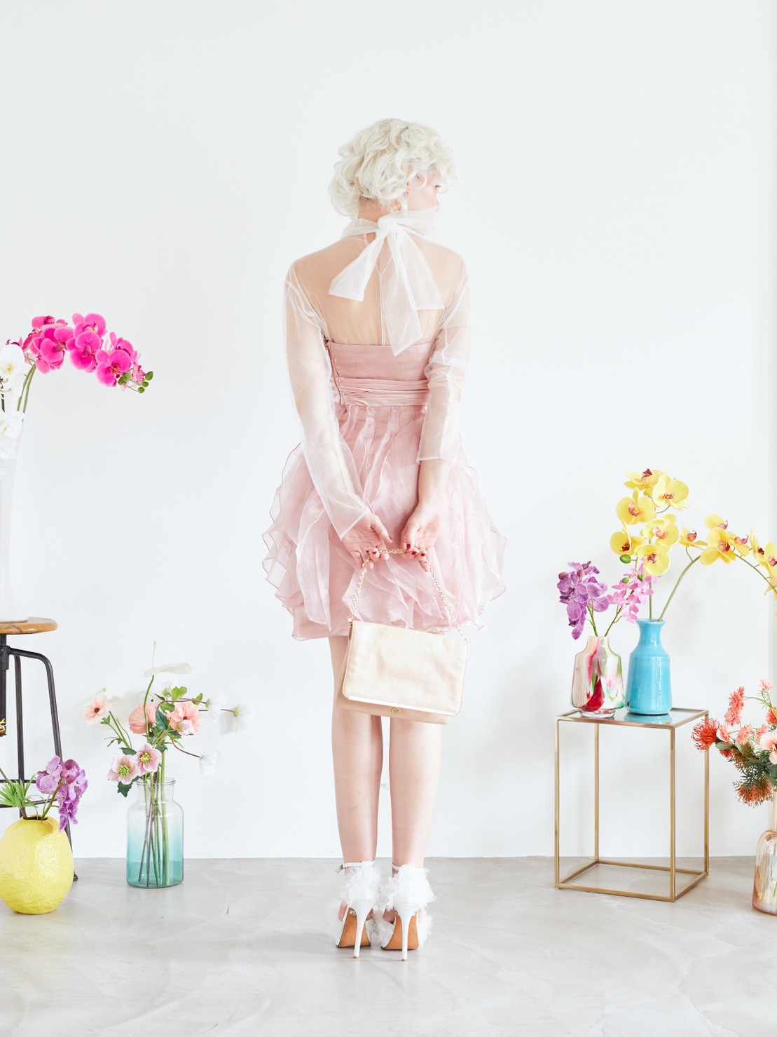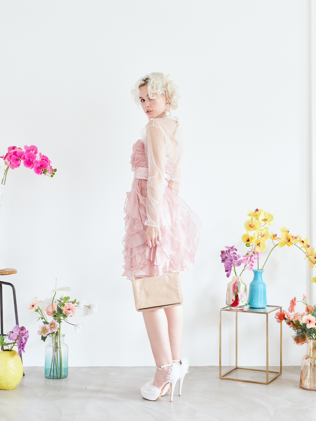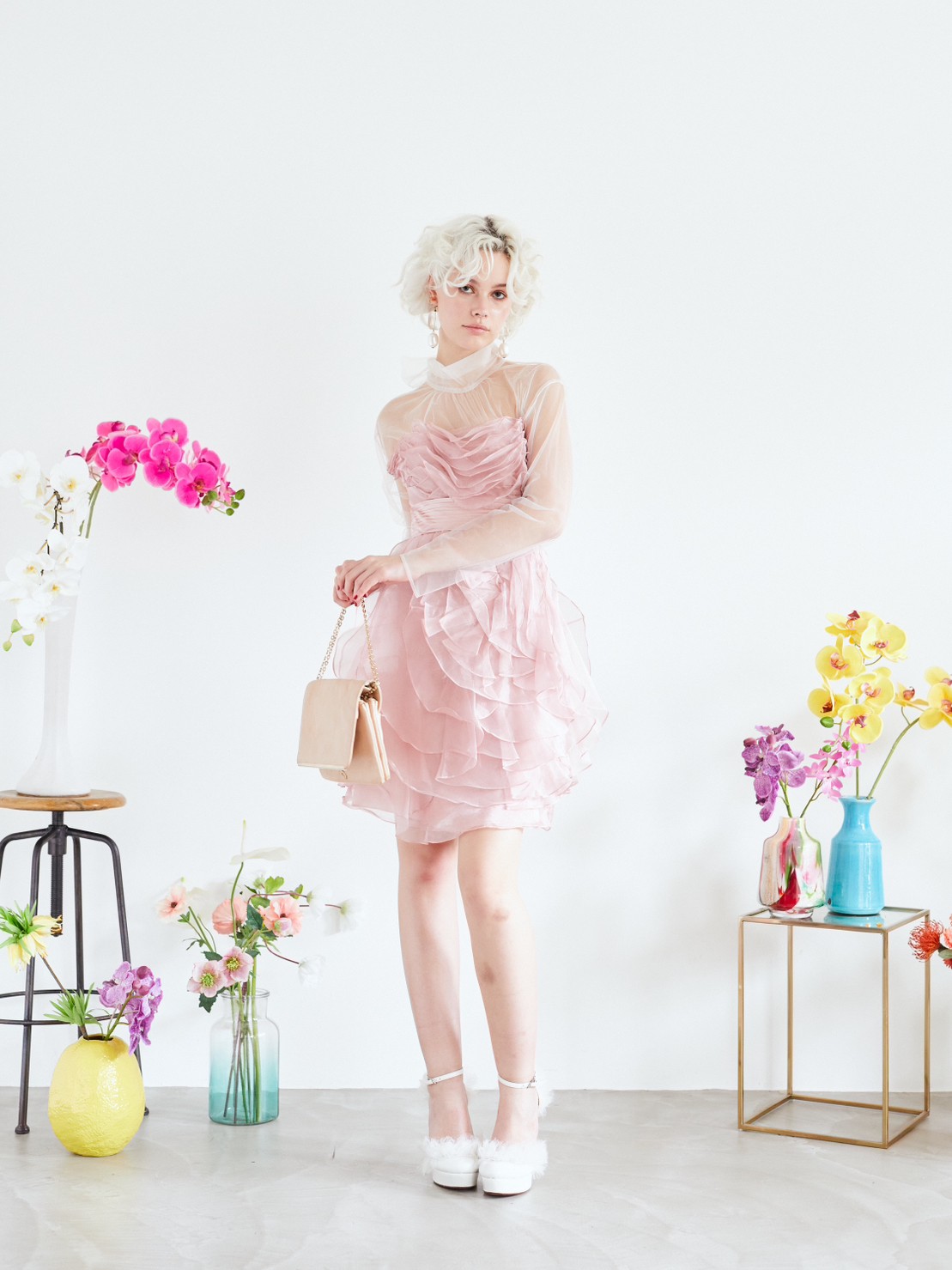 ベビーピンクのベアドレス。スカート部分が全体的に花びらの様なデザインでひらひらしていてとても可愛いドレスです。ブルーや水色、グリーン等寒色系の小物も相性が良いですし、同系色のピンクで合わせるとより一層甘いコーディネートになります。ボレロやストールなど合わせて結婚式のゲストドレスとしてもご利用頂けます。パーティーや謝恩会にもお勧めのドレスです。ベアドレスですが、ご希望でしたら透明なストラップもお付けできます。