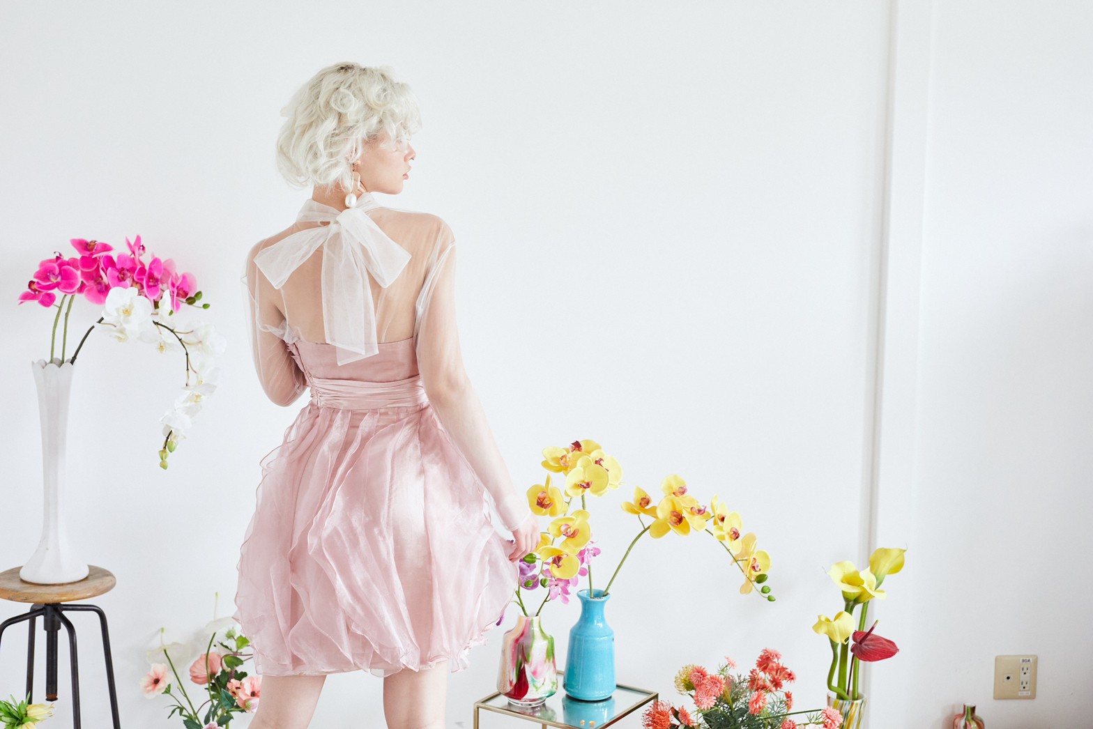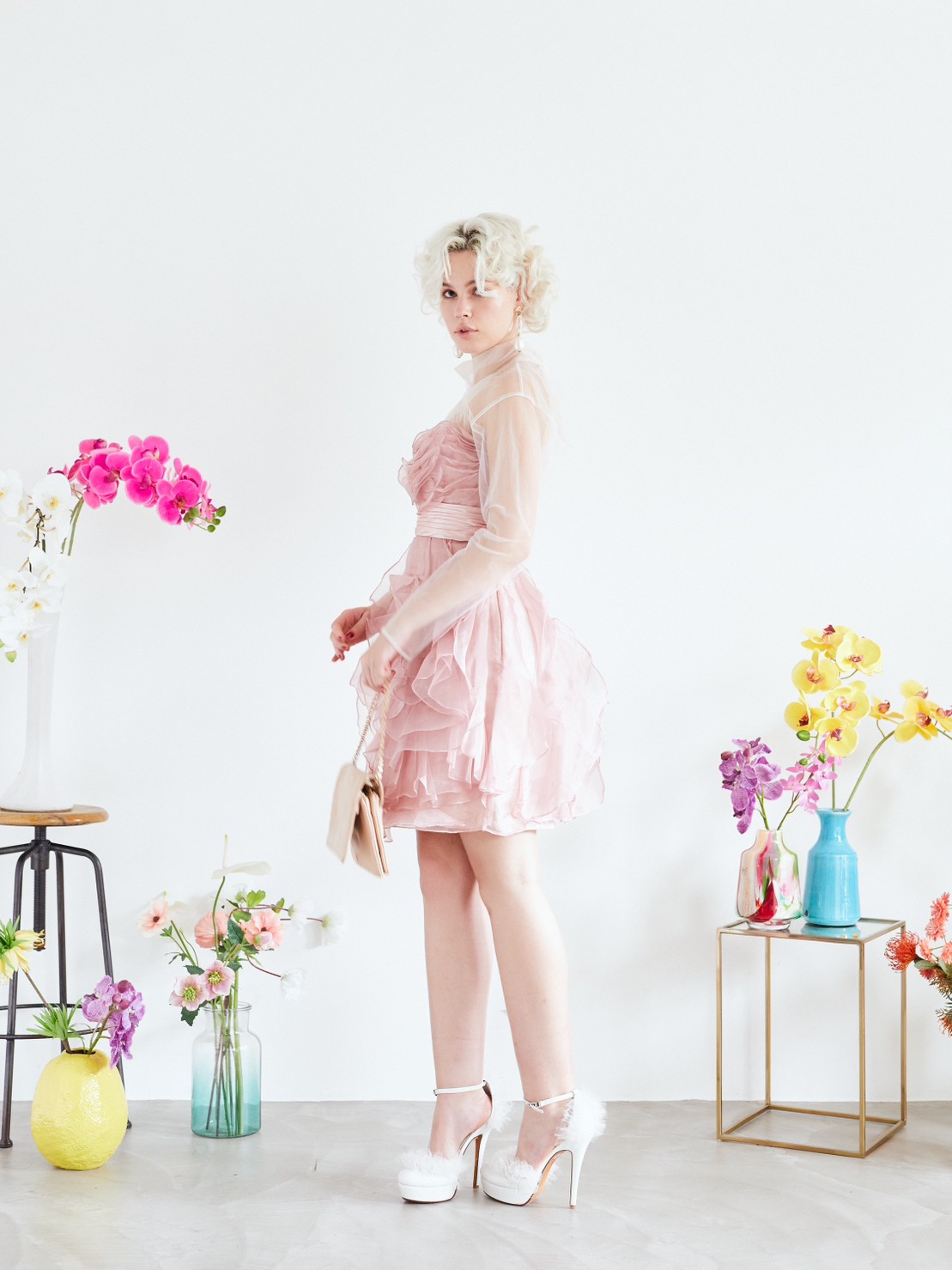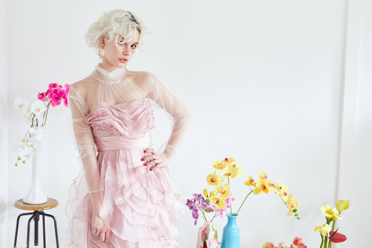 ベビーピンクのベアドレス。スカート部分が全体的に花びらの様なデザインでひらひらしていてとても可愛いドレスです。ブルーや水色、グリーン等寒色系の小物も相性が良いですし、同系色のピンクで合わせるとより一層甘いコーディネートになります。ボレロやストールなど合わせて結婚式のゲストドレスとしてもご利用頂けます。パーティーや謝恩会にもお勧めのドレスです。ベアドレスですが、ご希望でしたら透明なストラップもお付けできます。