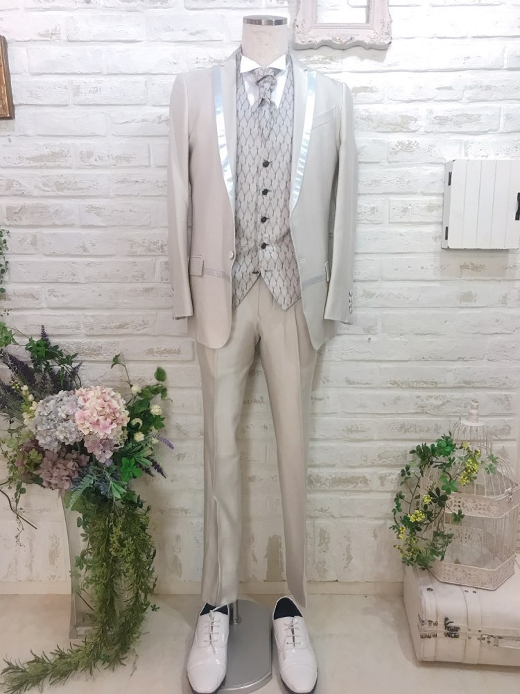 ホワイト×シルバーパイピングタキシードセットパンツS