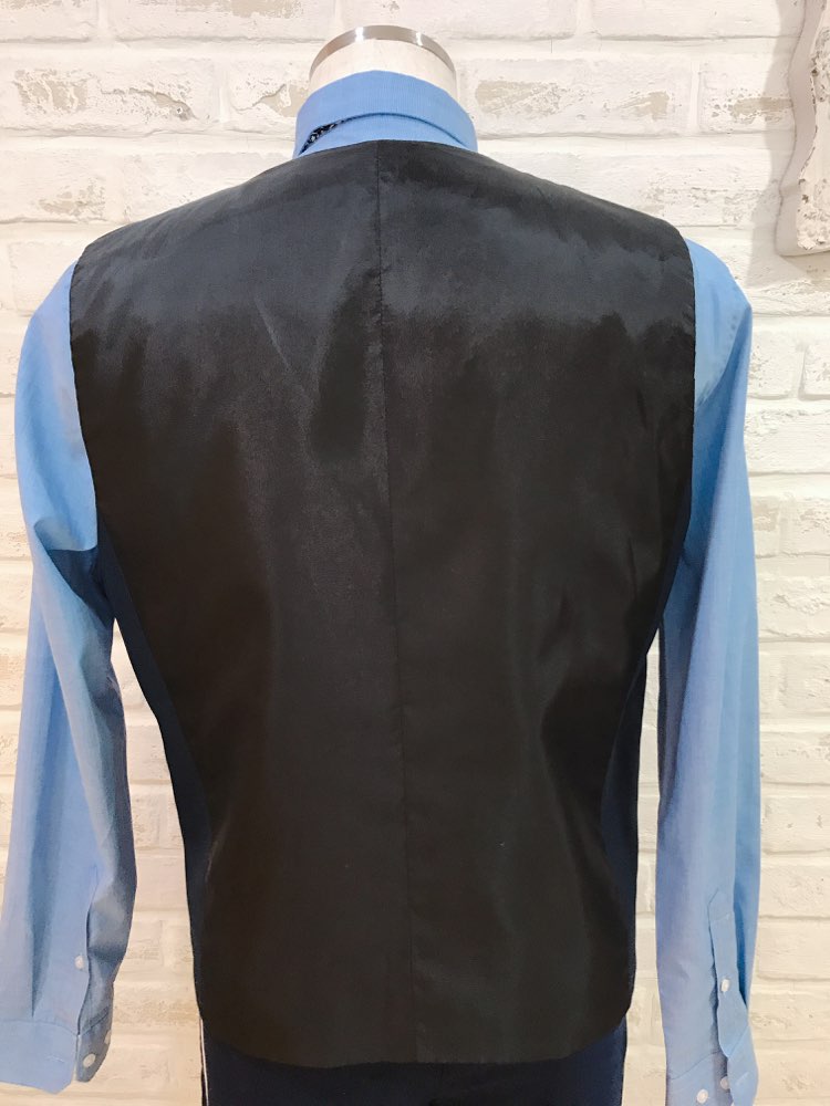 ネイビーの無地ベスト。若干リネン風の生地感。このベストは単品の展開です。ブラック、ホワイト、ネイビー、ブラウン、ベージュ、ブルー、グリーン、ピンク、ライトブルーなど、どんな色のシャツやジャケットとも相性のいい万能なベストです。パンツは上下の組み合わせを変えてホワイトデニムや柄のパンツ等を合わせても可愛いです。チェックやストライプ、ドット柄のシャツを合わせてノージャケットのベストスタイルでカジュアルな二次会タキシードとしても素敵。白のウィングカラーシャツを合わせればきちんとした結婚式や披露宴向けのフォーマルなコーディネートになります。披露宴・結婚式・ゲスト/結婚式の参列にも。その他パーティースーツ・二次会・海外ウェディング・フォトウェディング、前撮りにまで幅広いシーンでご使用いただけます。オールシーズンに適している定番の一枚です。