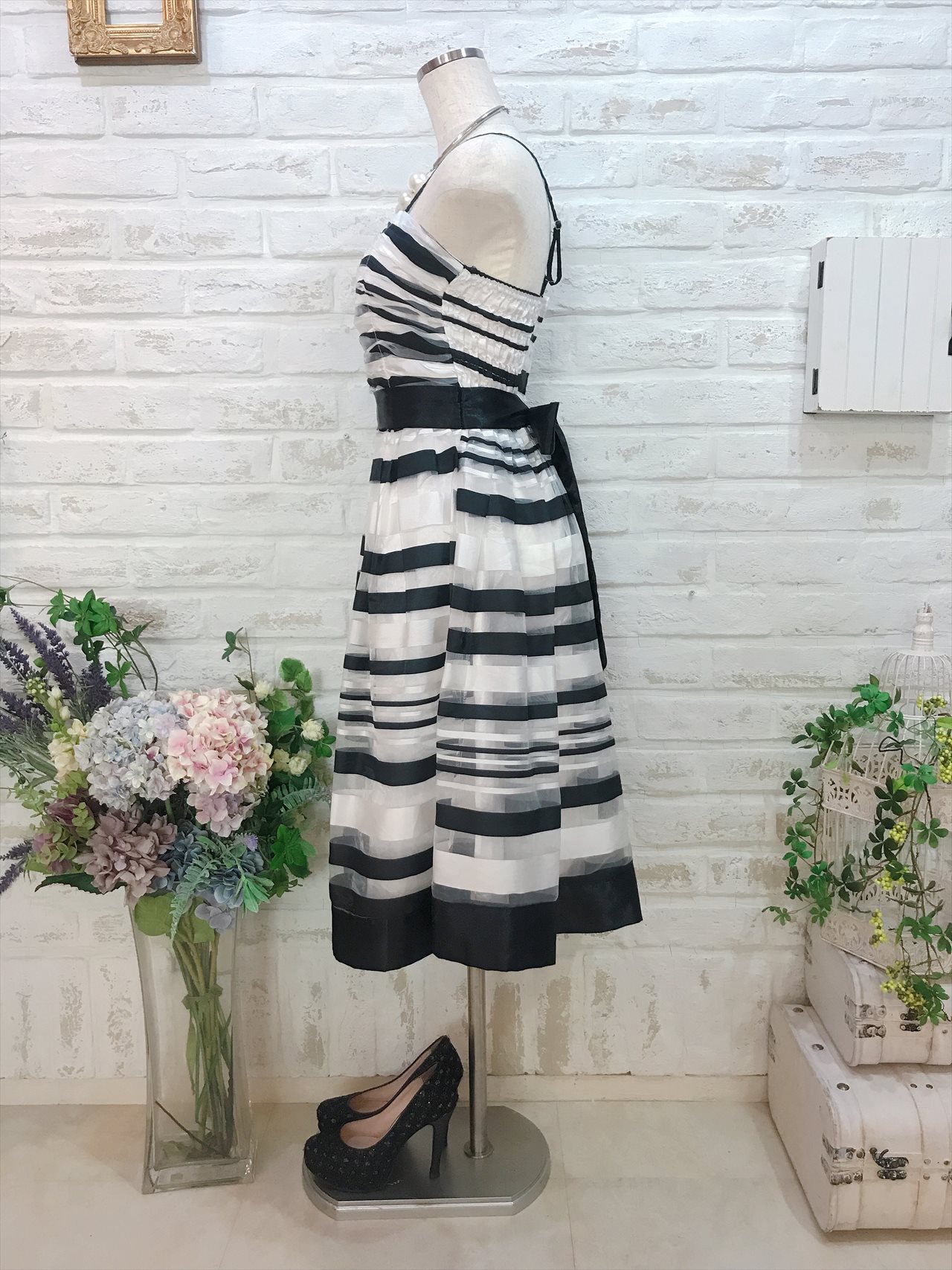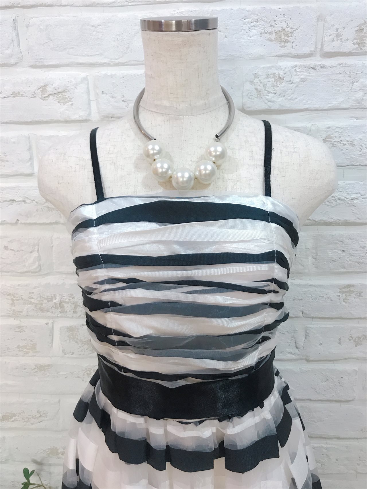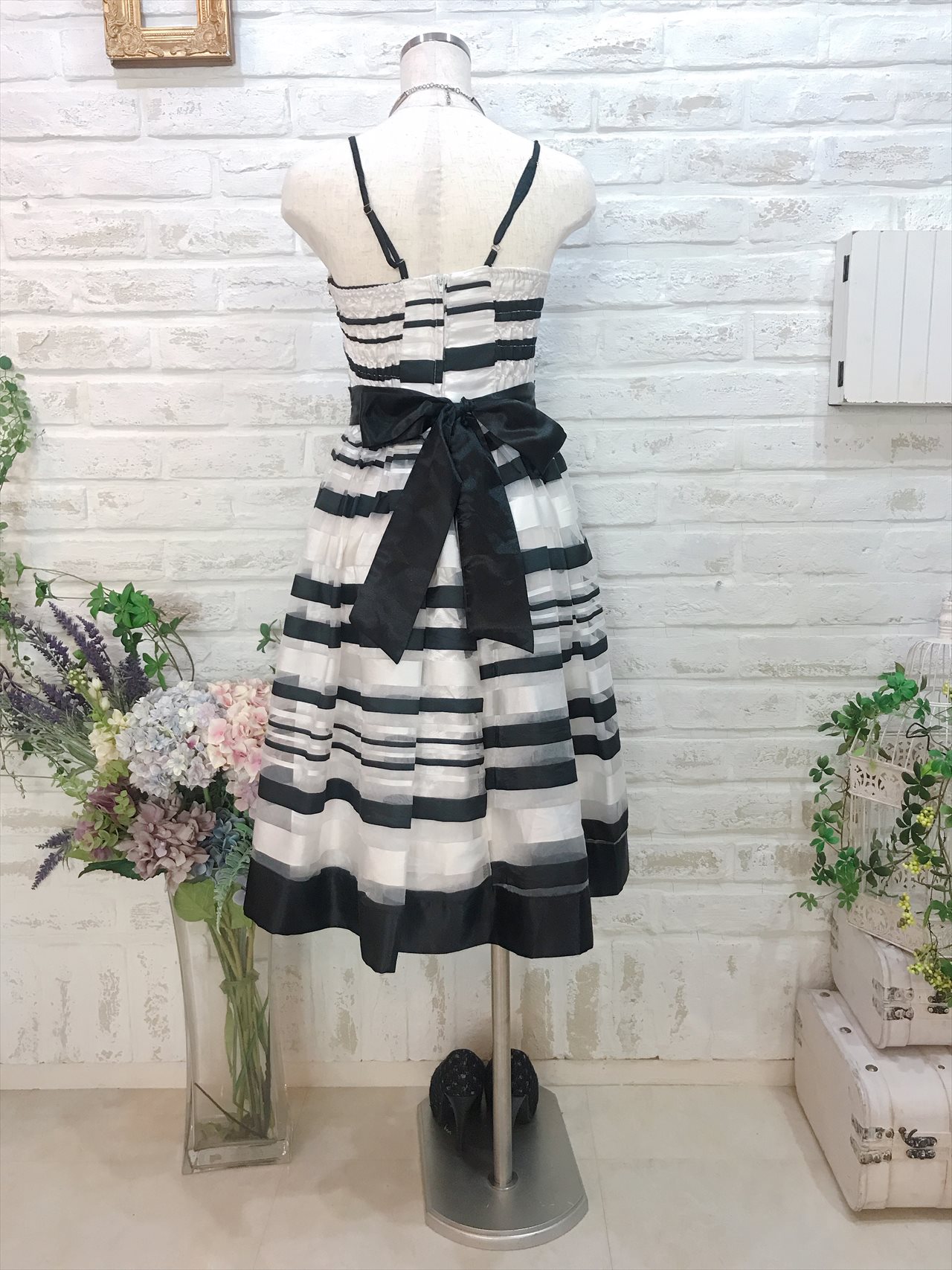 白×黒ボーダーベアドレス。裾長めで上品なドレスです。