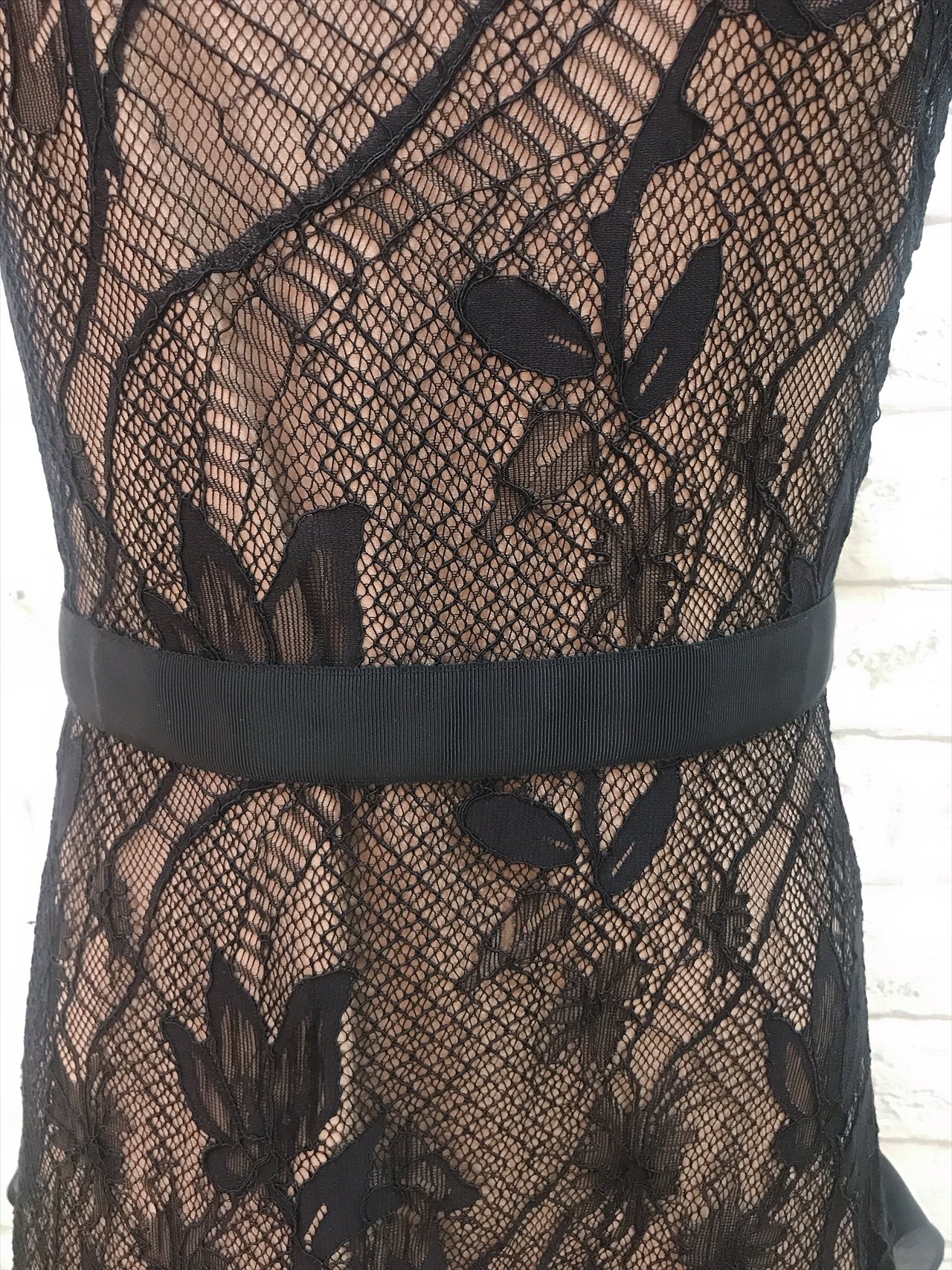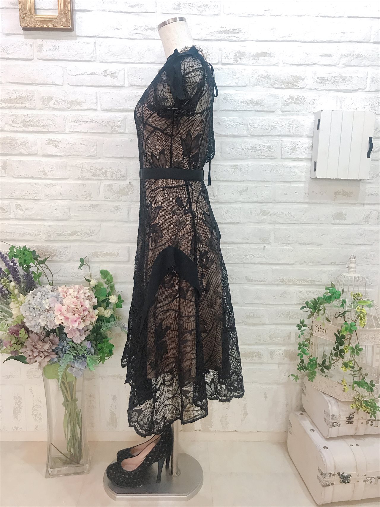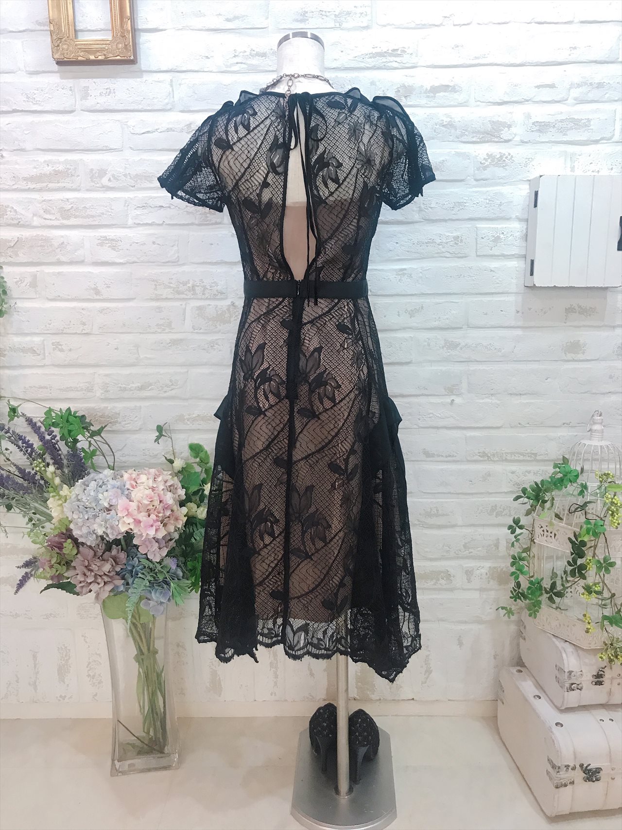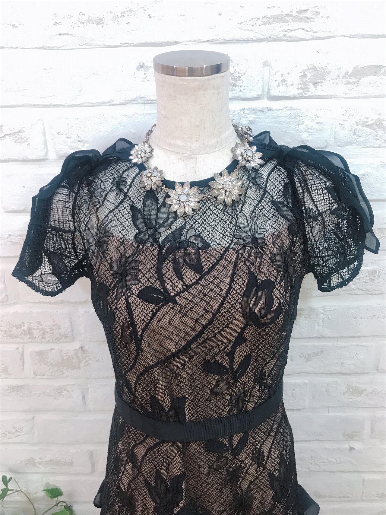 ブラック総レースイレヘムスカートショートスリーブドレス