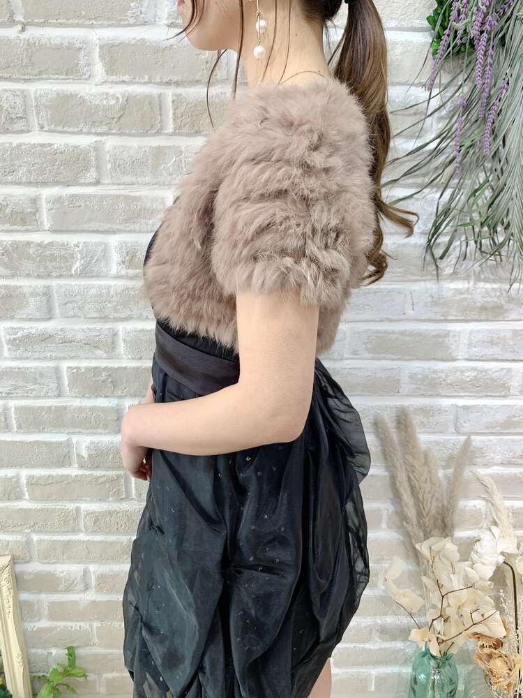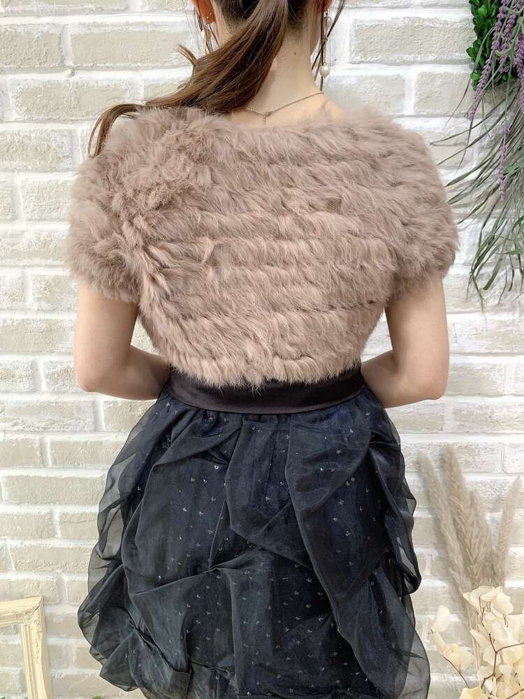 ココアブラウンのシンプルなラビットファーボレロ。落ち着きのあるブラウン系のカラーは、明るい色味のドレスにも深い色味のドレスにも季節感とシックで大人っぽい印象をプラスしてくれ、冬場のコーディネートを華やかに盛り上げてくれます。デザイン自体はシンプルなのでどんなスタイルにも取り入れやすく、可愛らしいドレスや大人っぽいドレス、ボリュームのあるドレスにもタイトなドレスにも組み合わせていただけますよ。パーティーや謝恩会や成人式等、華やかなドレスアップスタイルのお供にいかがですか?