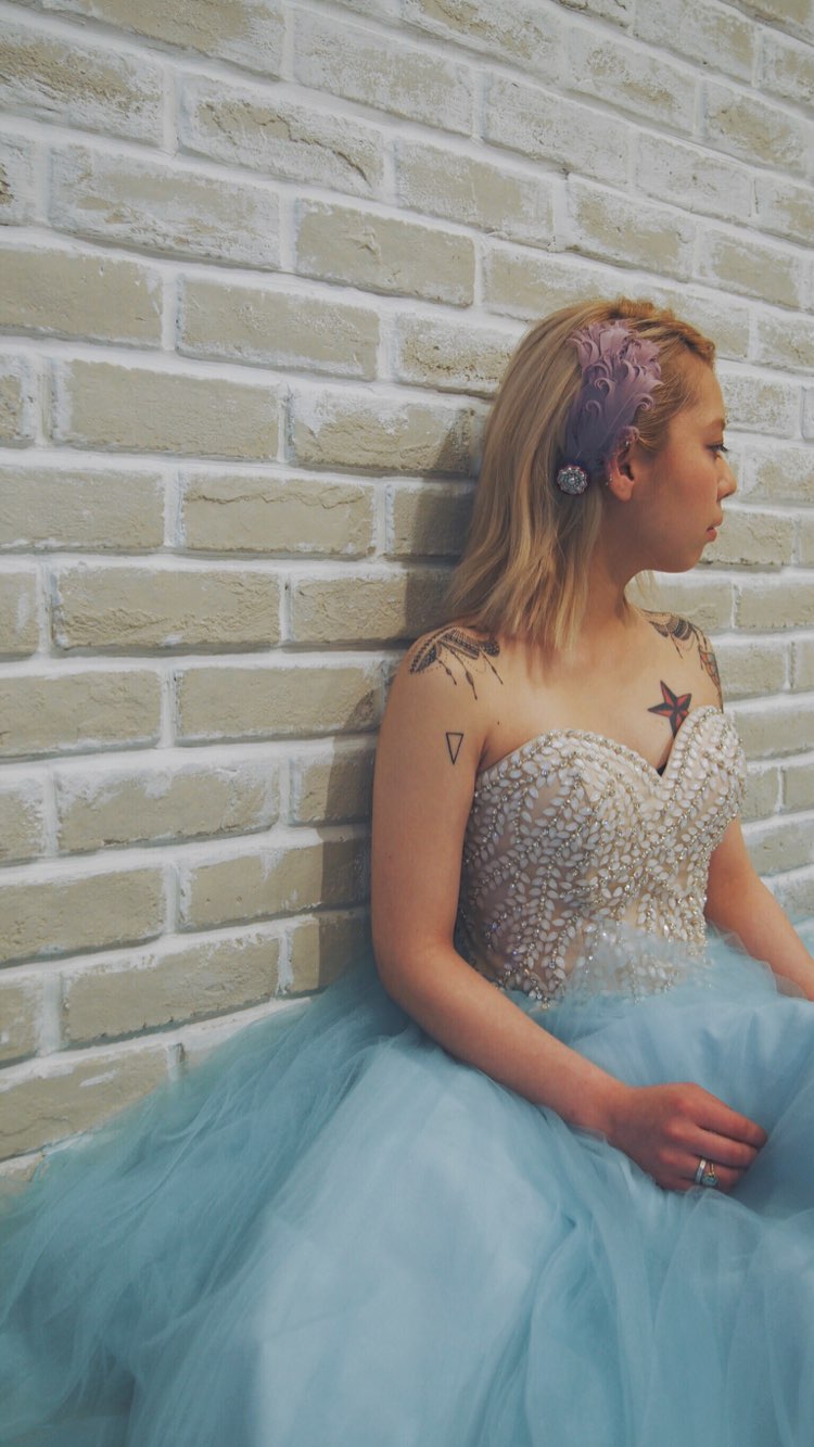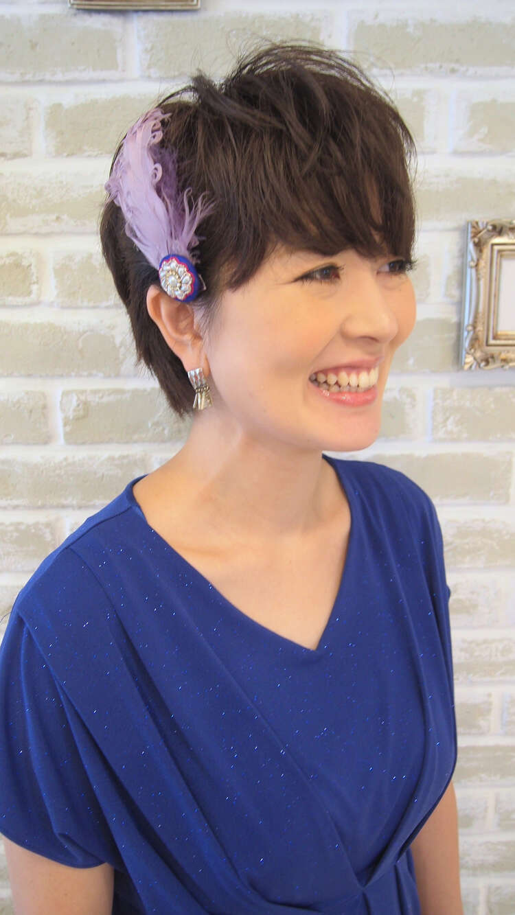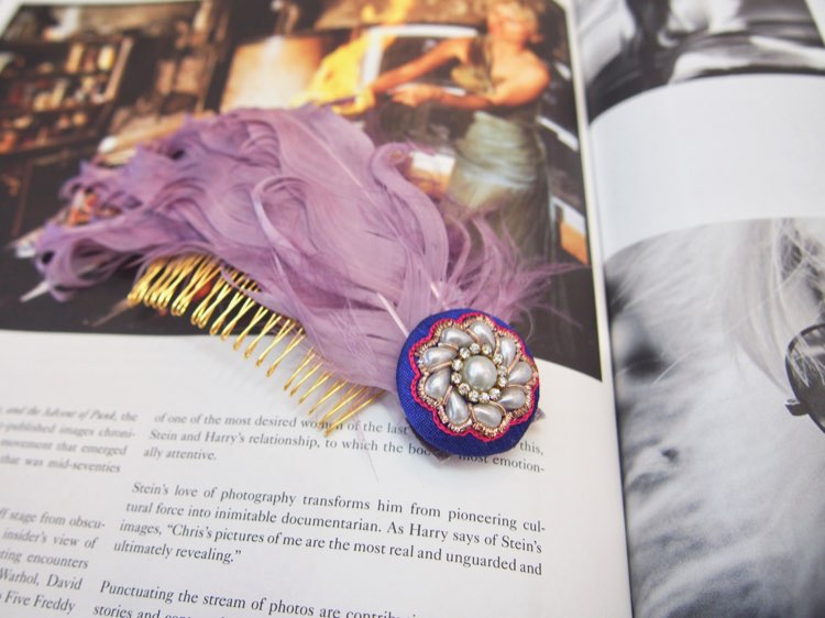 ハンドメイドのヘッドピース。インドやヨーロッパなど海外から輸入したパッチやヴィンテージリボンを使用しており、ドレス×ヘッドピースメインのコーディネートが楽しめる既製品にはないエッジの効いた色合いやデザインが特徴です。コーディネートにピリっとアクセントを与え、写真映えもバツグンで撮影にもぴったりです。こちらは、アメジストカラーのグースフェザーにハンドクラフトのビーズボタンをを組み合わせたヘッドピース。モノトーンのドレスやビビッドカラーのドレスに合わせたコーディネートや鮮やかな柄物ドレスに合わせたコーディネートなど、ドレスとフェザーのカラーを引き立てあうような思い切った合わせ方で楽しんでいただきたいアイテム。謝恩会や女子会などのパーティーだけでなく前撮りにもおすすめです。