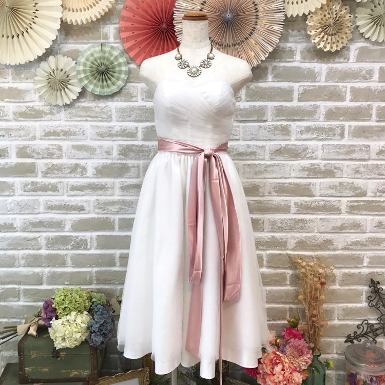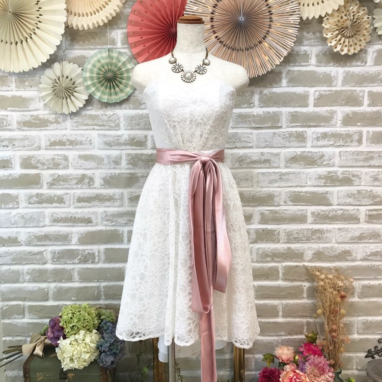 コーディネートにアクセントを与えおしゃれに仕上げてくれるサッシュベルト。女の子のカワイイ!の王道、ピンクのリボン。純白のウエディングドレスにピンクのリボンは、可愛さ間違いなしの組み合わせですね。優しげなピンクでコーディネートをほんのりと引き締め、上品で可愛らしいドレススタイルに。ブーケや結婚式のイメージカラー、新郎の小物とのリンクコーデもできそうです。ホワイトのウエディングドレスからカラードレスや柄物まで、小物使い小ワザが効いたコーディネートで、ゲストの皆さんも楽しめますね。長めのベルトなので、いろんな結び方でお使いいただけます。
