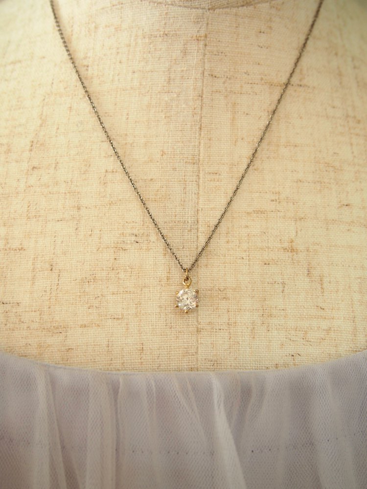 ストーン一粒のシンプルなペンダント。ゴールドのチェーンで肌馴染みもバッチリ。結婚式のお呼ばれなどにはパールのイヤリング等と組み合わせて、食事会・顔合わせでの清潔感あるコーディネートに。また、華やかなドレスやヘッドアクセや大振りのイヤーアクセに引き算で組み合わせた、パーティーや新婦様のドレスアップスタイルにも。マルチに使えるクラシックなデザインです。小粒でも程よくキラッとするので、デコルテを綺麗に魅せたい場合や派手にするよりこなれ感重視の場合にももってこいです。首の短さや顔の大きさが気になるといったお悩みをお持ちの方にもすっきりと着けていただけます。