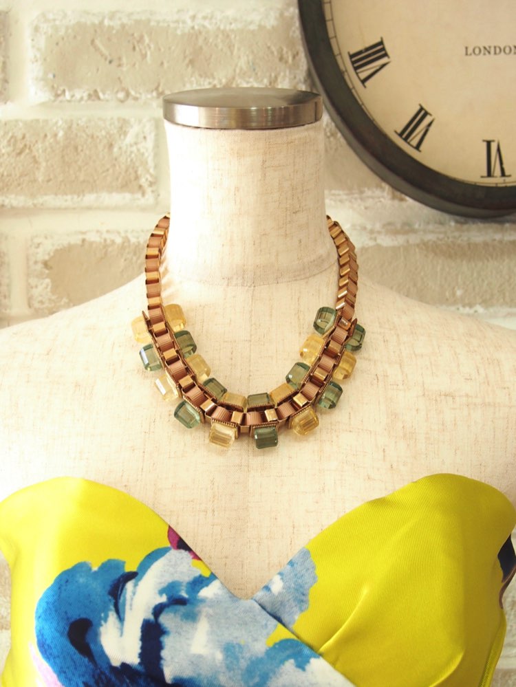 ヘビーなボリューム感でコーディネートの主役になること間違いなしの、ハードな雰囲気が漂うネックレス。ダークカラーやビビッドカラーの濃い色のシンプルなドレスにアクセントやハズしとして取り入れるとパワフルでかっこいいスタイルに。思い切ってイヤーアクセは無しか小さめで、作り込みすぎないヘアスタイルで引き算をしてこなれ感を狙うとおしゃれに仕上がります。ナイトシーンのパーティーなど、大人なドレスアップを試したい場合にチャレンジしてみてください。レンタルだからこそ挑戦できるインパクト大のデザインです。