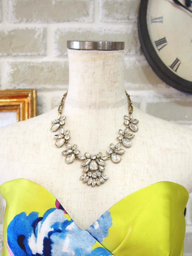 程よいボリューム感でコーディネートの主役になること間違いなしの、エスニックな雰囲気が漂うネックレス。ダークカラーやビビッドカラーの濃い色のシンプルなドレスにアクセントやハズしとして取り入れるとパワフルでかっこいいスタイルに。思い切ってイヤーアクセは無しか小さめで、作り込みすぎないヘアスタイルで引き算をしてこなれ感を狙うとおしゃれに仕上がります。ナイトシーンのパーティーなど、大人なドレスアップを試したい場合にチャレンジしてみてください。レンタルだからこそ挑戦できるインパクト大のデザインです。
