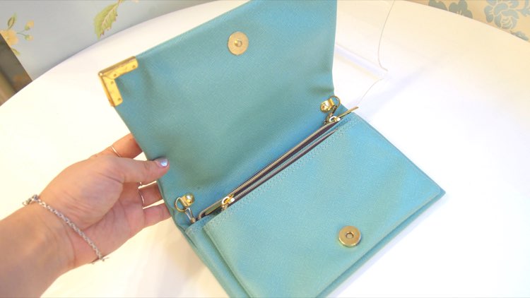 爽やかなミントグリーンのウォレット型パーティーバッグ。型押し加工の施されたフェイクレザーを使用したシンプルなデザインは、洗練された大人のカジュアルパーティーバッグとして活躍してくれます。チェーンがついておりショルダーバッグとしてもクラッチバッグとしてもお使いいただけるので、パーティーはもちろん、お出かけなどのちょっとしたドレスアップのお供にも。中は2つのポケットに分かれていて、収納しやすいのも嬉しいポイントですね!さらっと着れるようなデザインのドレスに合わせて、スタイリッシュで都会的なスタイリングにぴったりです。