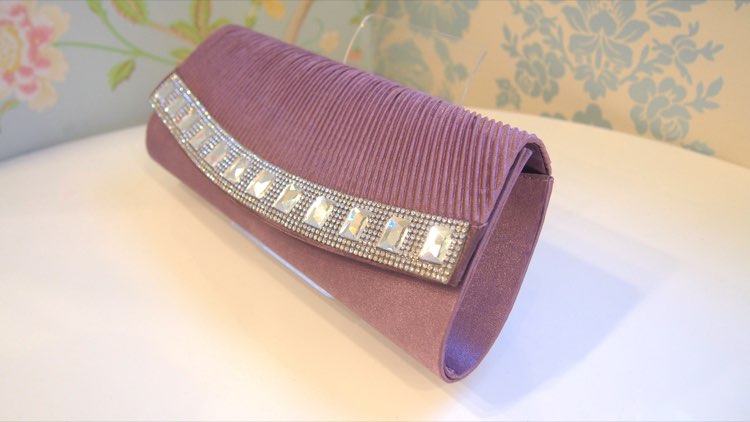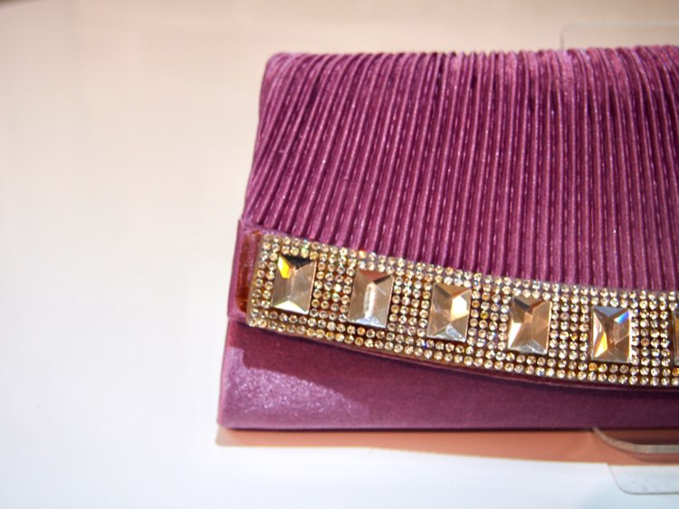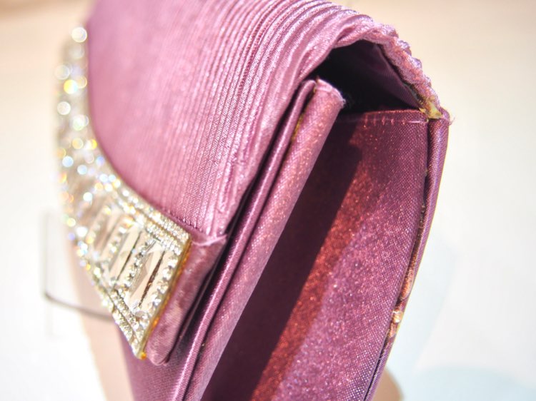 ライラックカラーが珍しいパーティークラッチ。大きなスクエアビジューと小さなラインストーンを豪華に配したデザインです。真紫だと妖艶になりすぎるパープル系カラーも、少しくすみのあるライラックカラーだと上品で落ち着きのある華やかさに。秋冬に人気のこのカラーは、ネイビーやブラックのダークカラードレスに差し色として合わせたり、淡いカラーのドレスに締めカラーとして季節感をプラスしたりと幅広いタイプのドレスとコーディネート可能。上品で重厚感のあるデザインを盛り込んだバッグは、アクセサリーの要素も兼ねてお使いいただけ、グっと大人っぽいイメージに仕上げてくれます。
