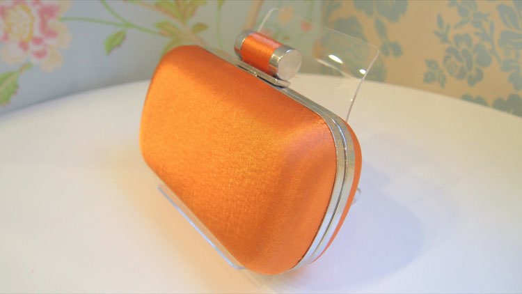 明るく軽やかなオレンジカラーが印象的なハードタイプのミニボックスクラッチバッグ。コーディネートのスパイスとして活躍してくれそうなアイテム。シンプルながらもフレームのシルバーが効いて大人カジュアルなテイストで、アクセサリー感覚で組み合わせていただけるので、ドレスとの色合わせを考えるのが楽しくなりますね。パーティーシーンでのご利用がおすすめのイブニングクラッチは、パーティー向けの華やかなドレスにはもちろん、少しカジュアルなテイストのドレスにアクセントとして組み合わせていただくのも◎です。容量が少ない分、見た目のバランスはスッキリ見せることができますよ。スタイリッシュで洗練されたイメージに。