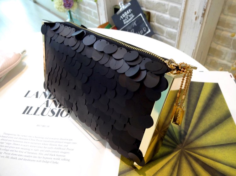 ラグジュアリーなブラックとゴールドのカラーリングのポーチ。落ち着いた質感でありながらもエッジの効いた鱗のようなデザインがコーディネートに一捻り加えてくれます。昔ながらのパーティーバッグと比べて、少しカジュアルな雰囲気に見えるので、合わせるドレスの種類もさらっとカジュアルで、コンパクトなシルエットのものがおすすめ。パンツドレスや手持ちのお洋服との組み合わせにも◎です。コーディネートにメリハリを出すアイテムとして、カジュアルなパーティーやちょっとしたドレスアップでのお出かけなどにお使いいただけます。海外ならではの媚びないデザインが、人と被らないオリジナルなスタイルを演出してくれますね。レンタルだからこそ、個性的なデザインにチャレンジしてみられてはいかがでしょうか。