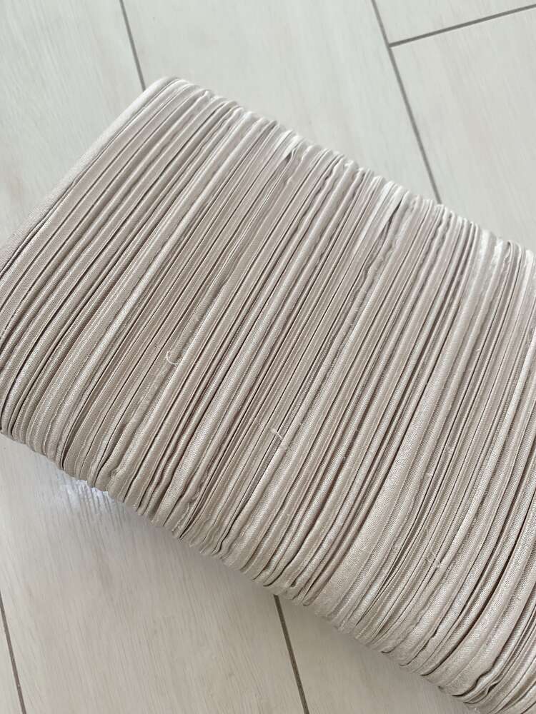 細かなプリーツデザインの生地に、スノーフレークをモチーフにした大きめビジューを品よくあしらったベージュカラーのパーティーバッグです。上品で大人な風合いはドレスと互いに引き立て合い、ドレスアップスタイルをさらにエレガントな印象に。年代やドレスを問わない定番カラーのベージュカラーなら、コーディネートの心配も無用です。袱紗も入る縦幅で、結婚式のお呼ばれにも安心して使えるのも嬉しいポイントですね!程よい華やかさを添えてくれるだけでなく、ぐっと落ち着きのあるきちんとしたイメージに見せてくれます。