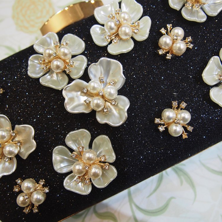 優しげなパールフラワーとブラックの生地のコントラストが印象的なハードタイプのミニボックスクラッチバッグ。大人可愛いコーディネートのスパイスとして活躍してくれそうなアイテム。デコラティブな大振りのフラワービジューはインパクト大で、アクセサリー感覚で組み合わせていただけるので、シンプルなドレスとの相性抜群です。パーティーシーンでのご利用がおすすめのイブニングクラッチは、パーティー向けの華やかなドレスにはもちろん、少しカジュアルなテイストのドレスにアクセントとして組み合わせていただくのも◎です。容量が少ない分、見た目のバランスはスッキリ見せることができますよ。スタイリッシュで洗練されたイメージに。ご利用の際はビジューがドレスに引っかからないようにご注意くださいね。