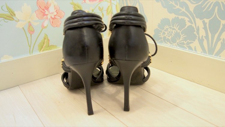 ブラックレザーにゴールドが映える、スタイリッシュなデザインのTory Burchのサンダル。エレガント性のあるデザインでありながらも過剰なコンサバ感がなく、お手持ちのお洋服や普段着ないようなドレスまで、オンオフあらゆるシーンに合わせてお使いいただけます。パーティーでは、夏場の軽めなドレスや重くなりがちなロングドレスとの引き算コーデにおすすめ。かっこいい女性像が思い浮かぶような、パワフルであったりエレガントなイメージのコーディネートに。デザイン上足首が固定されるので、歩きやすさがあるの嬉しいポイントですね。