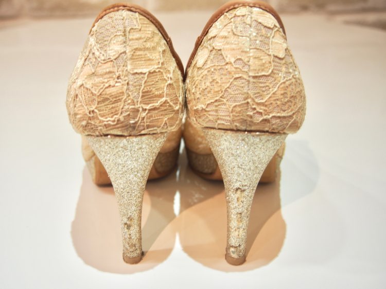 落ち着きがあり上品でエレガントな雰囲気のベージュカラーのパンプス。肌馴染みのいいヌーディーなピンク系ベージュのレースが優しく女性らしい印象です。ストームとヒールにはシャンパンゴールドのラメをびっしりとあしらったさりげない華やかさも備えたデザイン。柔らかなレースの布地を使用したオープントゥなので、足の形にも馴染みが良く履き心地◎。また、ストーム部分に厚みがあるシューズは安定感や疲れにくさがあり、脚を長く見せてくれる嬉しい効果も。少しだけドレスアップしたいちょっとしたパーティーやお出かけから、華やかなパーティーの華やかなドレスのお供まで幅広いシーンで活躍してくれますよ。