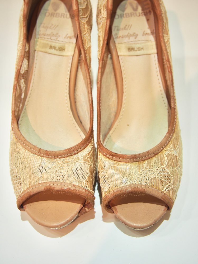 落ち着きがあり上品でエレガントな雰囲気のベージュカラーのパンプス。肌馴染みのいいヌーディーなピンク系ベージュのレースが優しく女性らしい印象です。ストームとヒールにはシャンパンゴールドのラメをびっしりとあしらったさりげない華やかさも備えたデザイン。柔らかなレースの布地を使用したオープントゥなので、足の形にも馴染みが良く履き心地◎。また、ストーム部分に厚みがあるシューズは安定感や疲れにくさがあり、脚を長く見せてくれる嬉しい効果も。少しだけドレスアップしたいちょっとしたパーティーやお出かけから、華やかなパーティーの華やかなドレスのお供まで幅広いシーンで活躍してくれますよ。