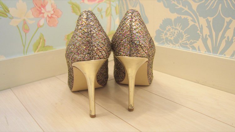 マルチカラーのグリッターが可愛いオープントゥパンプス。ベースのブラックが効いた大人なイメージのアイテムです。インソールやヒールはメタリックゴールドで、エレガントさを忘れないデザインが海外らしい1足。お手持ちのお洋服や普段着ないようなドレスまで、オンオフあらゆるシーンに合わせてお使いいただけます。パーティーでは、大人っぽくスレンダーなシルエットのドレスと合わせていただくのがおすすめ。かっこいい女性像が思い浮かぶような、スタイリッシュで洗練されたイメージのコーディネートに。