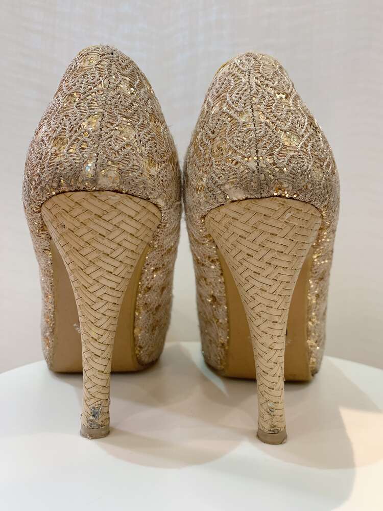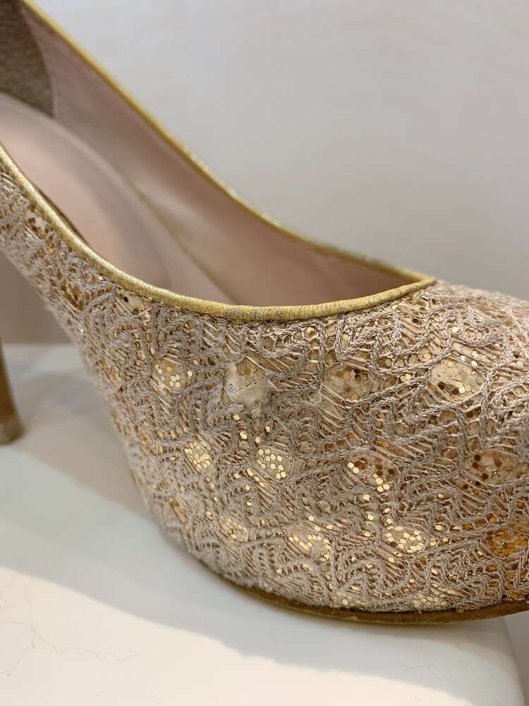 ゴールドラメレースプラットフォームパンプス /24.5