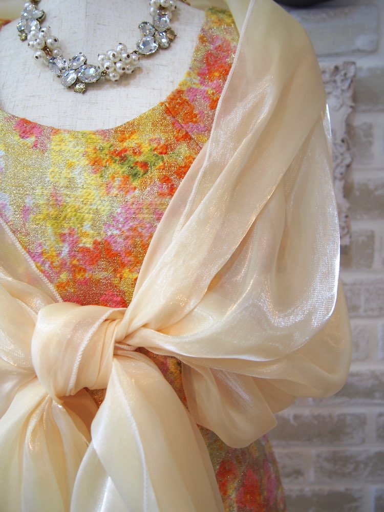 クリームカラーの光沢が綺麗なシンプルなショール。程よいふんわり感と気品を感じさせる光沢がエレガントな雰囲気で、コーディーネートにパーティー感をプラスしてくれます。ドレスもしっかりと華やかな生地のものに合わせるのがおすすめ。シンプルなドレスも、このショールを羽織るとワンランク上の装いになり華やかさも増します。結婚式やパーティ、演奏会などフォーマルかつ華やかなドレスアップスタイルにどうぞ。