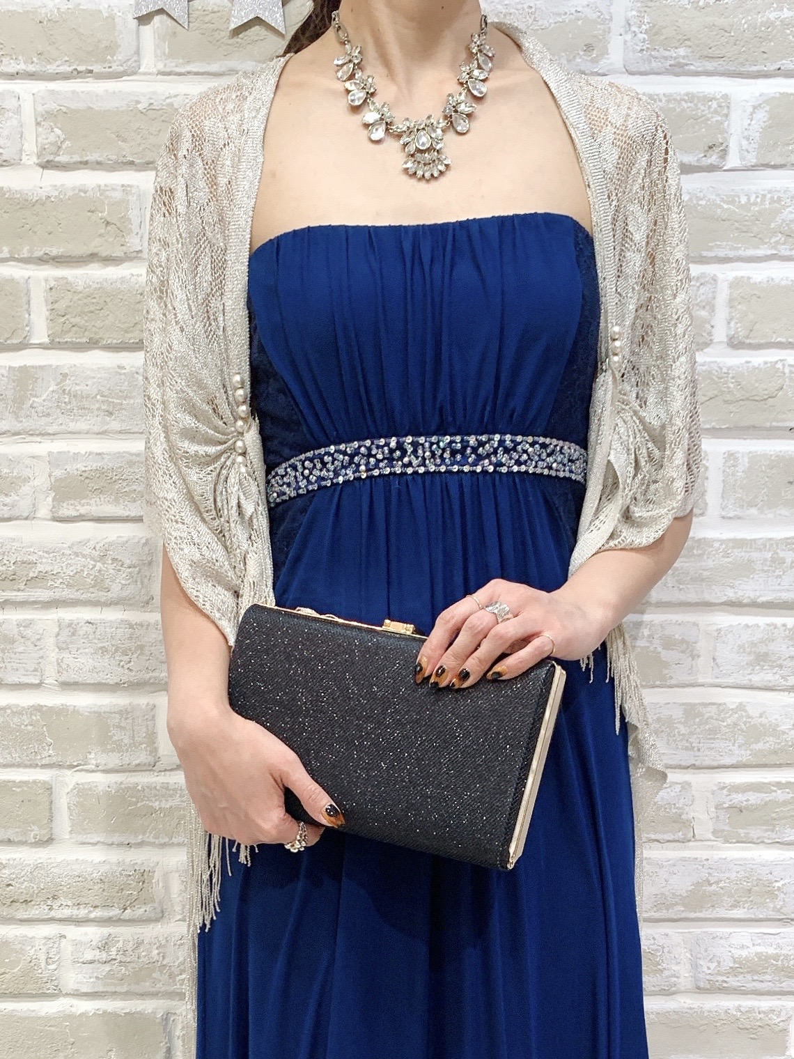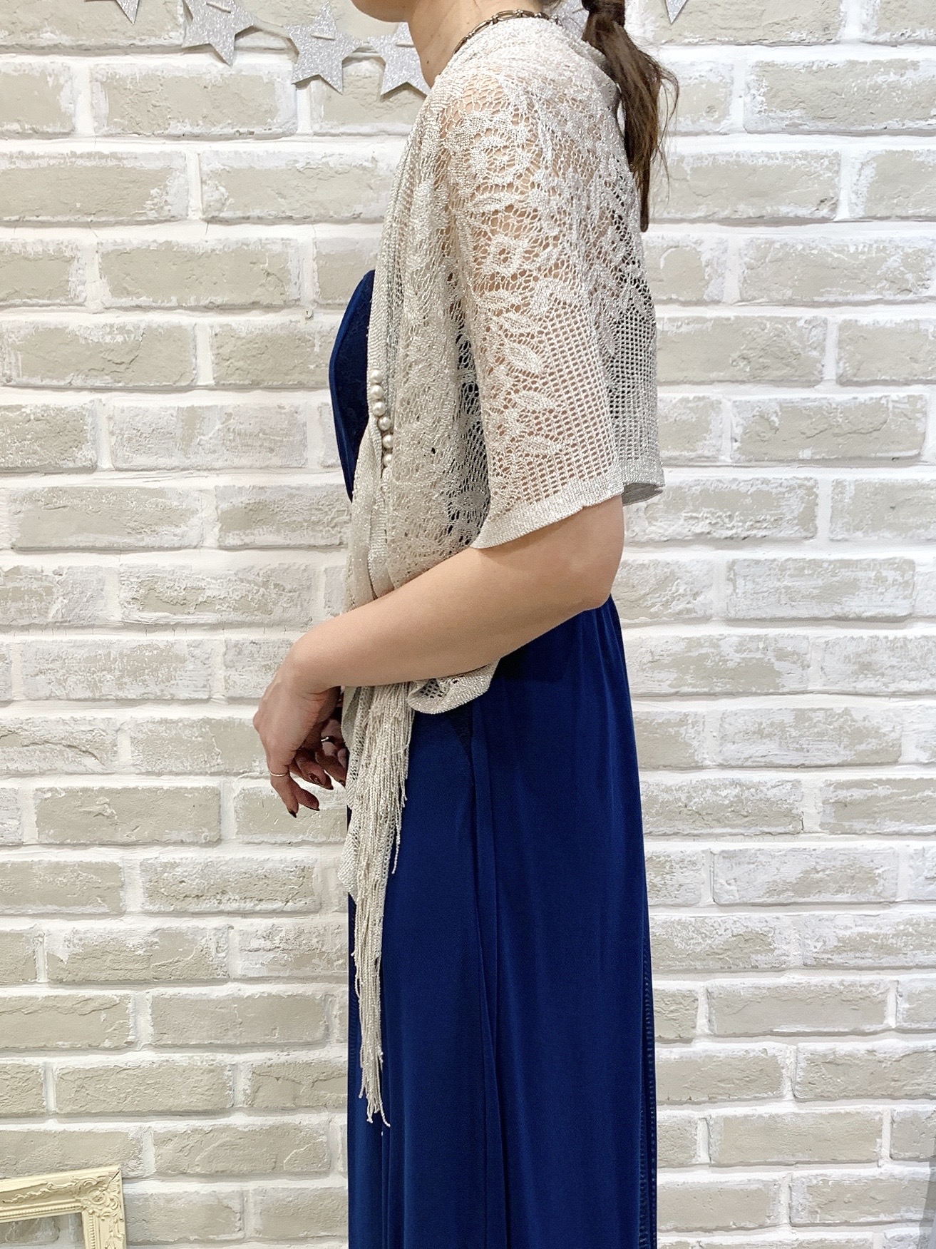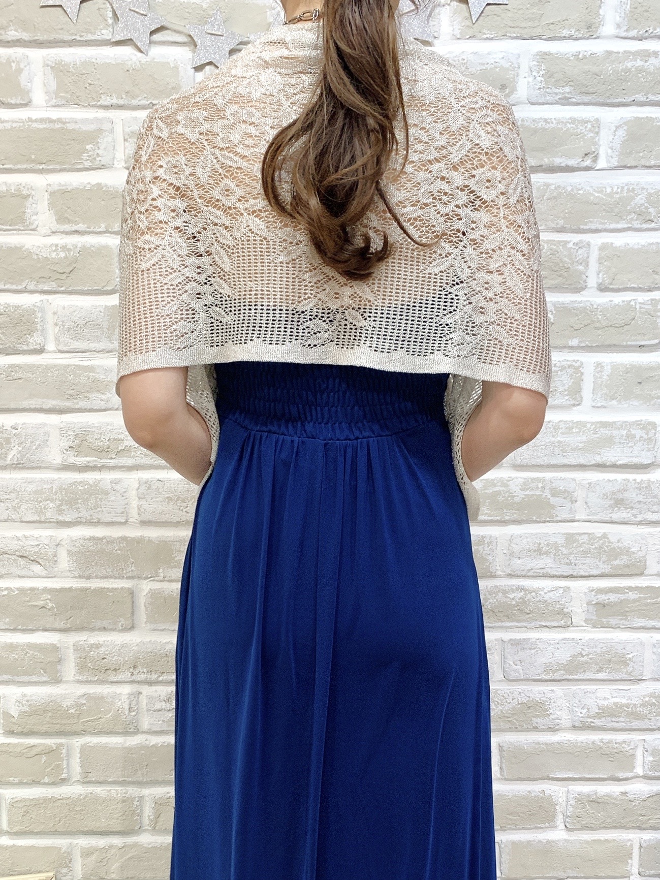 華やかでエレガントなコーデが叶うシャンパンカラーのラメ糸を使用したフリンジストール。他のストールに比べて丈が短く小柄な方にもバランスよくお使いいただけます。お祝いの席にもぴったりなパールの装飾を施したホック付きで、前を留めても、留めずに肩からかけるだけでもずれ落ちにくいのが嬉しいポイント。お食事の際やご挨拶の際も安心して着用できますね。シックなドレスやシンプルなドレスに+αして、コーディネートを華やかに彩りましょう。