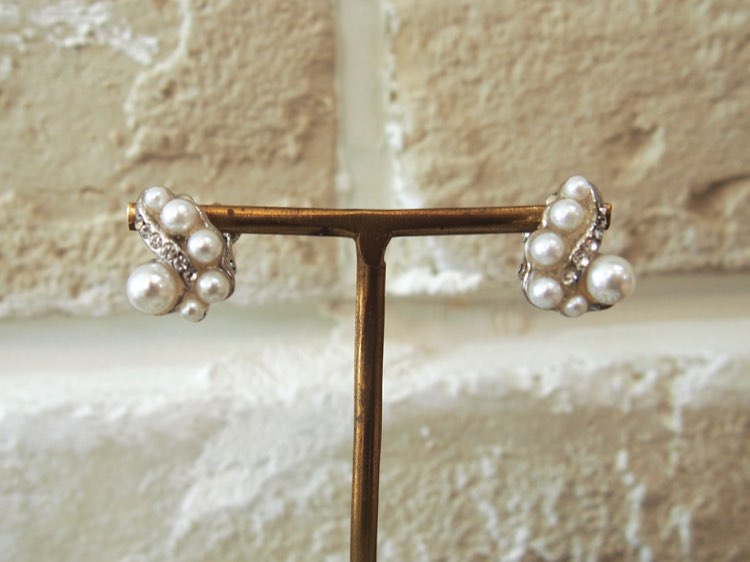何のモチーフかというと難しいですが、なんとも女性らしく優しい印象のイヤリング。くねくねっとした曲線のフォルムにストーンとランダムな大きさのパールがぷっくりと見えるように施され、ストーンが控えめで主張し過ぎずパールが主役になったデザイン。落ち着いた上品なタイプですので、どんなシーンにもスタイルにも合わせやすくコーディネートも迷わず安心。特に顔合わせなど清楚なイメージでのスタイリングには間違いなしのこちらのイヤリング。シンプル系のナチュラルなワンピースやドレスとも相性◎品のある商品をお探しの方におススメです。