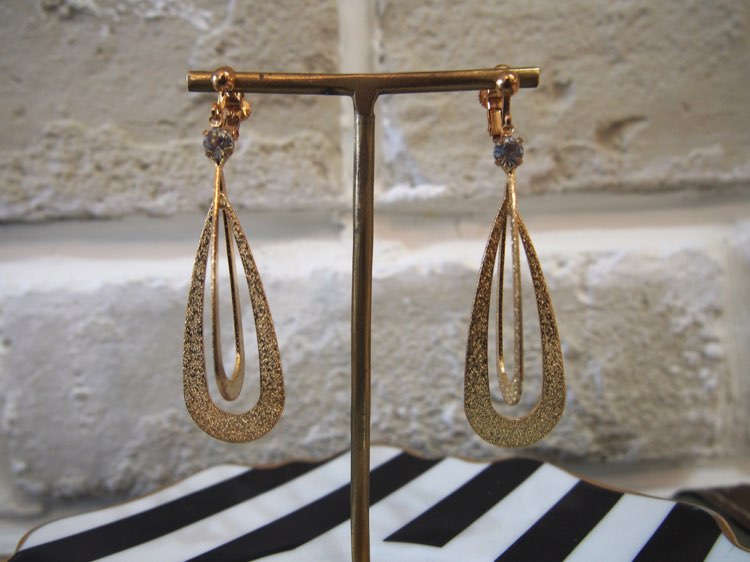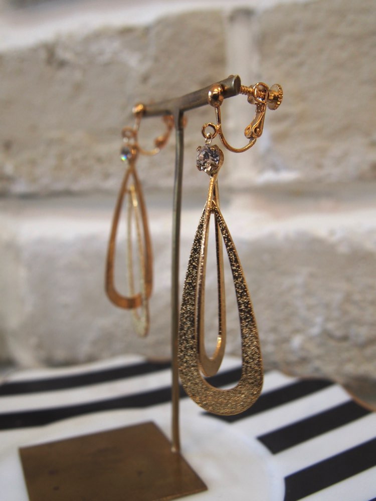 とてもクールなデザインのティアドロップ型ロングイヤリング。トップのストーンから連なるデザインは比較的大きめな作りとなっておりますが、中心部分が空洞になっているので重たい印象もなく抵抗なく着用頂けます。カラーはゴールドのセミマット仕様となっており、カッコいい雰囲気の中にも女性らしさのある、そんなデザインです。揺れるデザインは目を惹く効果があるので華やかなパーティーなどにピッタリ。ロングドレスなどでスタイリッシュなコーディネートをお楽しみ下さい!派手過ぎることのない存在感のあるイヤリング。おススメです。