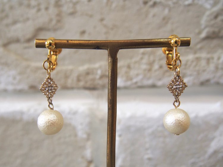 レースパーツとコットンパールのゴールドイヤリング。コットンパールは通常のパールよりナチュラルな輝き、繊細で柔らかい質感が特徴です。こちらはコーティングとはなりますが質感そのままにお楽しみいただけます。シンプルな装いにとてもよく合い、普段使いのコーディネートはもちろん結婚式のお呼ばれシーンにもピッタリ。1年中活躍してくれるコットンパール、華やかになりすぎないおススメの商品です。普段あまりアクセサリーを着けない方、キラキラしたデザインが苦手な方にも抵抗なく着用頂けるデザインとなっておりますのでこの機会に是非!!