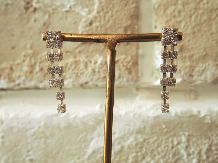 女性らしく優しく揺れる、シンプルストーンピアス。アシンメトリーデザインの2連ストーンがとても上品かつシンプル。オールストーンですので、歩くたびに耳元がキラキラと輝きます。大きすぎないサイズ感がまた使いやすさ◎パーティースタイルなどのボリュームあるネックレスや華奢なタイプのネックレス、どちらとも相性が良くコーディネートも選びません。このようなシンプルなデザインは年代問わず着用頂けるのでおススメです。結婚式から華やかなパーティー・お食事会まで幅広く活躍してくれそう。華やか過ぎないシンプルなスタイルがお好きな方に是非!!