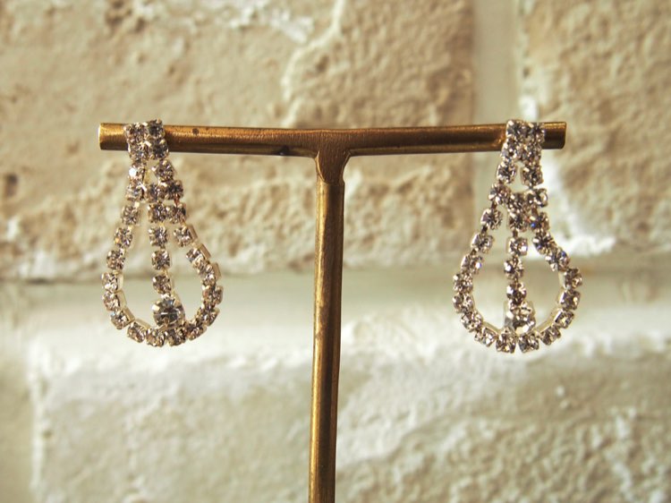 空洞になったドロップフォルムの中心にラインが1本入ったシルバーピアス。華奢な作りにこの1本のラインストーンが入ることによって豪華な印象に。ドロップ型特有の流れるようなフォルムとストーンの輝きがとてもラグジュアリーで女性的。動くたびに目を惹きそう。どんなシーンにでもピッタリですが、イヴニングパーティーなど華やかな場でスレンダーラインのロングドレスとのスタイリングはおススメです。カッコよく、華やか、一気に大人の女性に大変身。女性だからこそ楽しめるスタイルですね!お好みの華やかなドレスとのコーディネートをお楽しみ下さい。