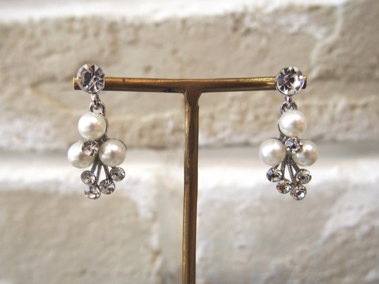 ボタニカルデザインのシルバーピアス。どことなくゆらゆら揺れる“さくらんぼ”のようにも見える可愛らしい作りとなっております。可愛いだけじゃなく、ストーンの輝きとパールの美しさがきちんと感もあり女性らしく上品なデザイン。大きすぎず小さすぎずとサイズも丁度良くシーンを選ばなそう。パールとストーンがミックスされたアクセサリーは大人っぽく綺麗めになりがちですが可愛らしいデザインは程よい抜け感があり、気合いの入り過ぎないところも使いやすいですね。結婚式や謝恩会・女子会などに。女性らしいスタイルがお好きな方におススメです!