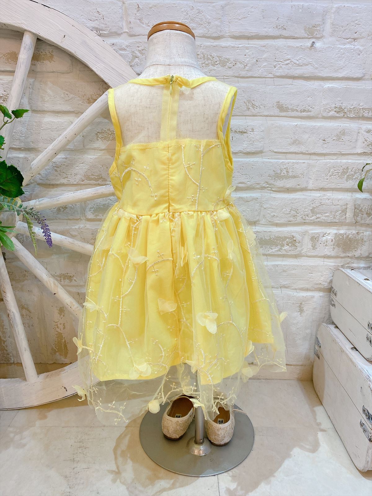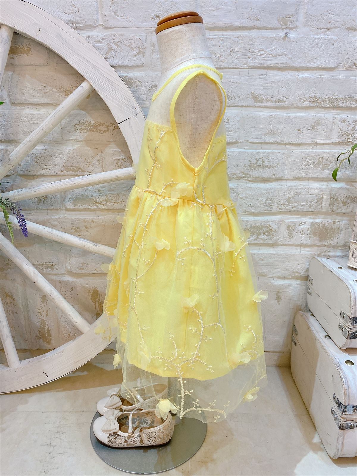 ひまわりイエローカラーキッズドレス。全体的なチュールとお花がとってもキュートで可愛いキッズドレス。ピアノの発表会等のステージ衣装にもぴったりです。その他パーティーや結婚式のお呼ばれ、様々なシーンでご利用頂ける可愛らしいワンピースドレスです♪