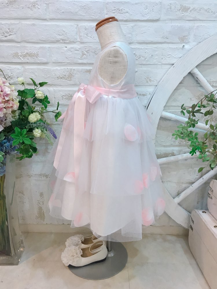 ”ガーリー”の王道!リトルプリンセスのお気に入りピンクドレス女の子が大好きなピンクに、心踊る一着です。 スカート部分はふんわりとしたチュールにピンクの花びらがあしらわれ、上品な印象に。 ウエストにピンクのリボンを結べば、より一層可愛い印象に♪ お姫様なシルエットが楽しめます。結婚式のおよばれ、リングガール・フラワーガールの衣装、ピアノやヴァイオリンの発表会・演奏会・コンクール、七五三どのシーンにもぴったりの1着です。