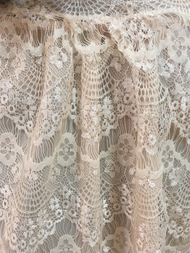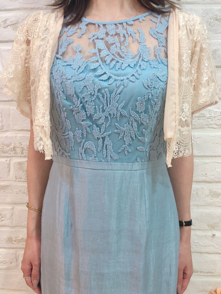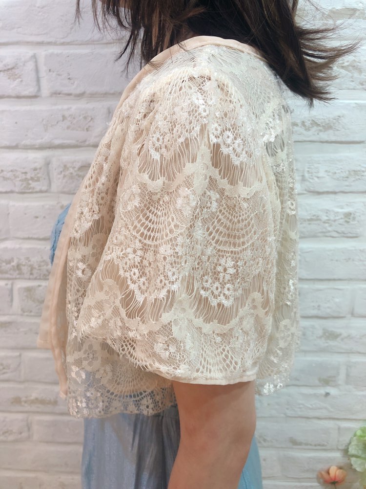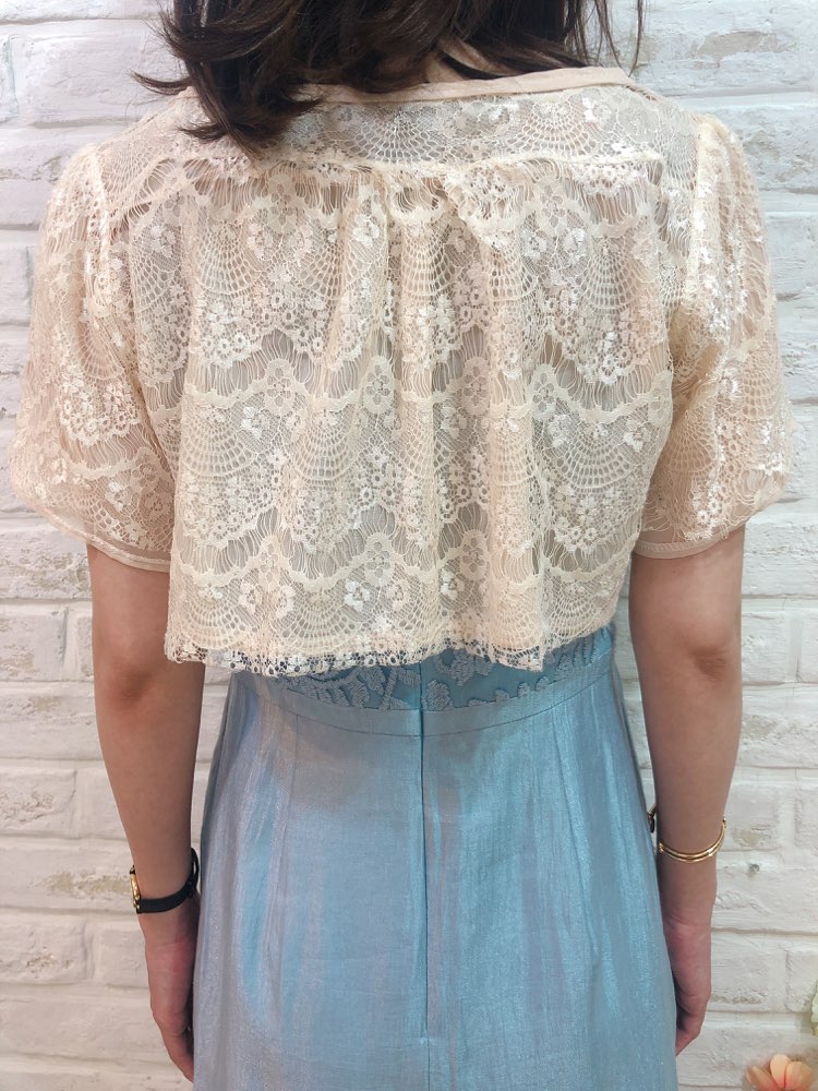 全面フリル&レースデザインで女性らしいデザインが沢山盛り込まれてはいますが、可愛くなり過ぎないのは、軽やかな生地感のおかげ♪幅広いシーンやドレスにも相性抜群です。