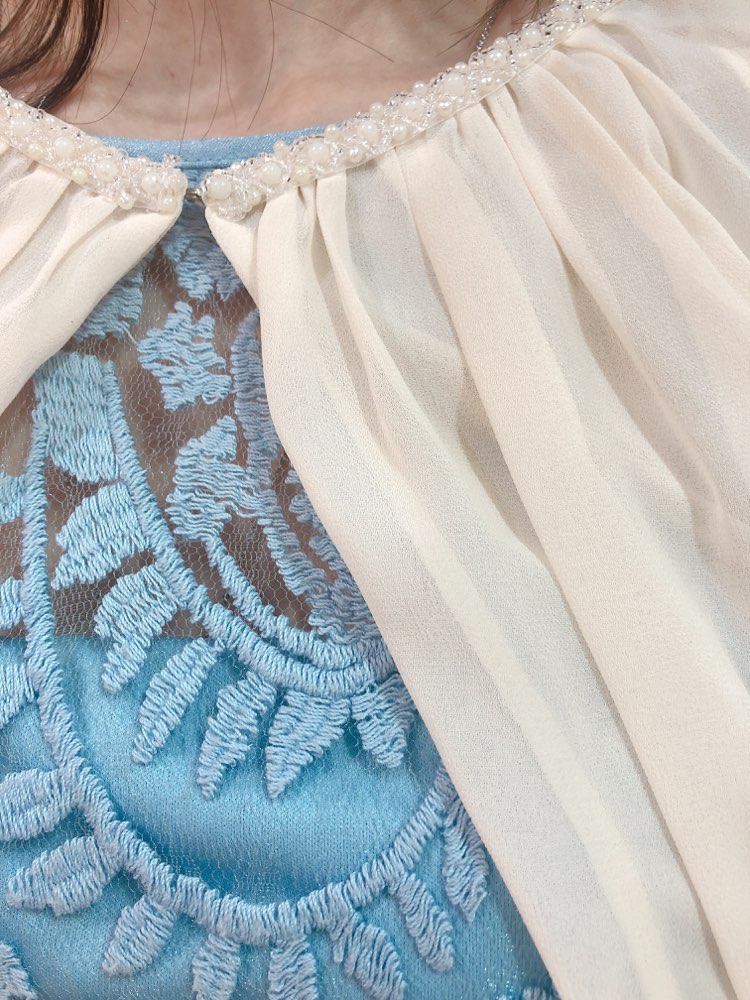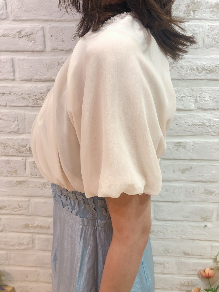 ベージュ首元パール付袖口絞りボレロ