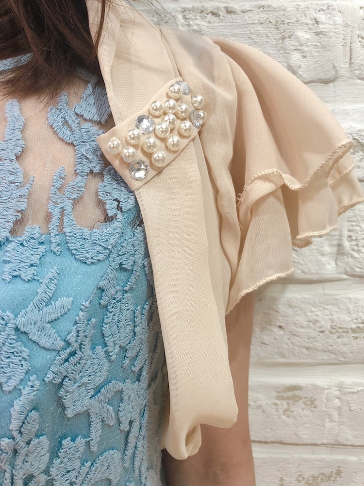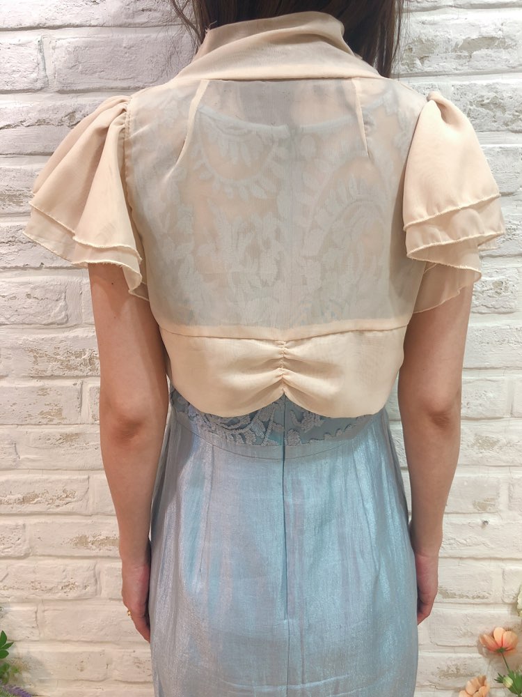 ベージュシフォン素材ビジュ付きボレロ
