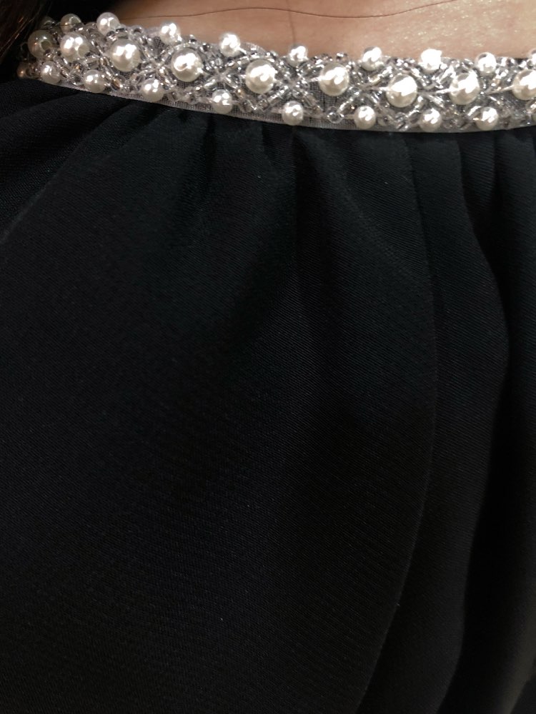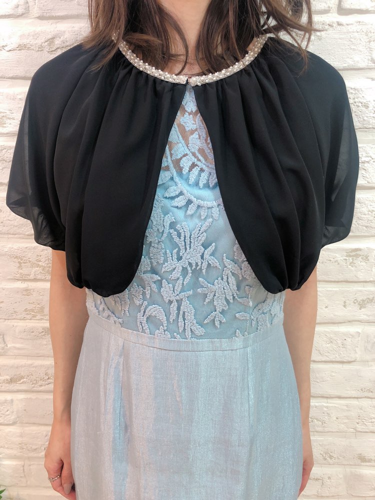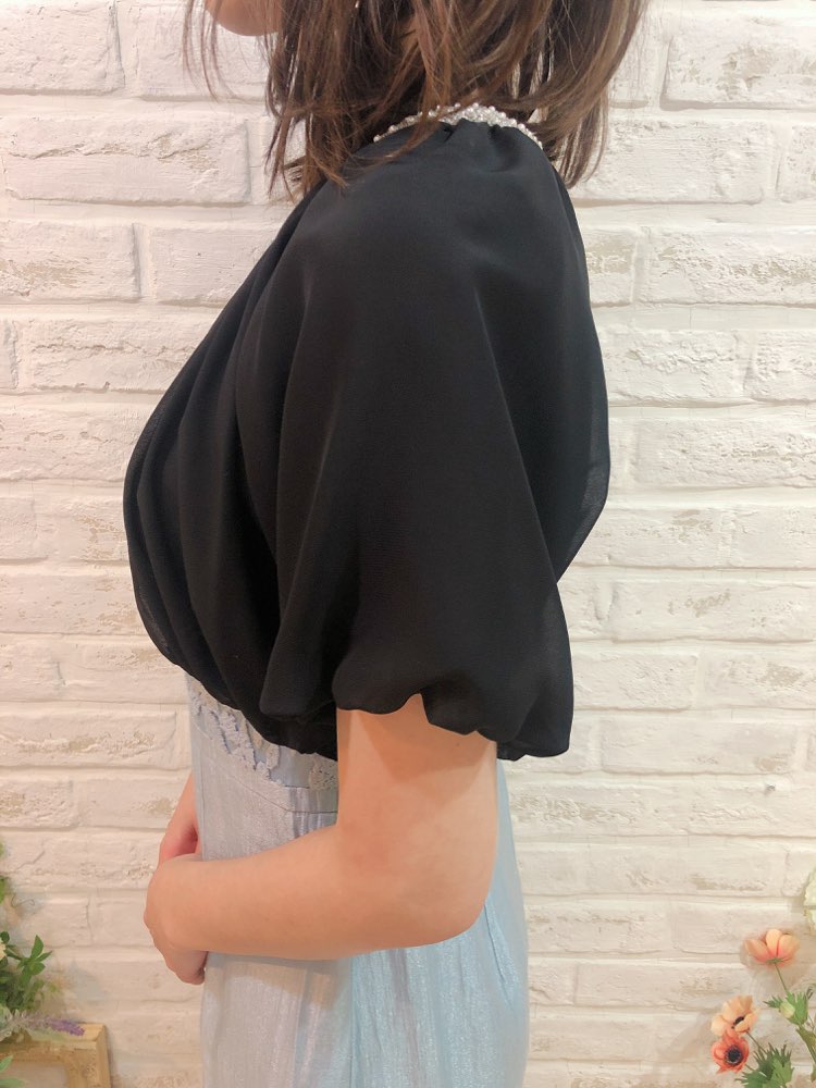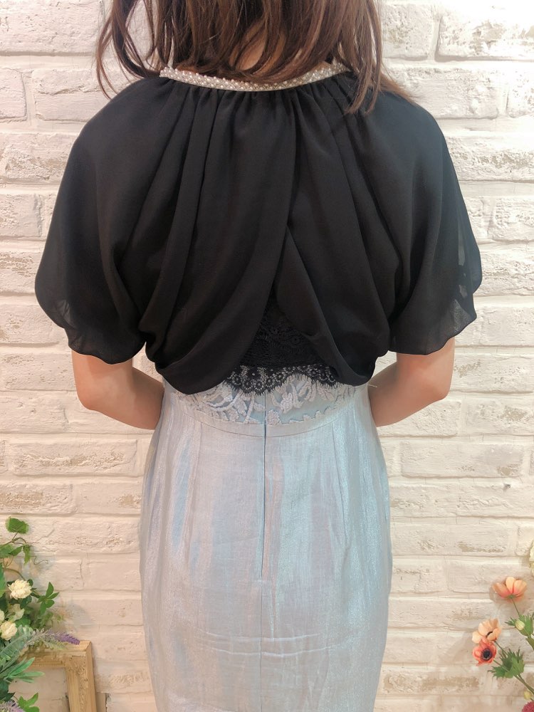ブラックシフォン素材首元パールビジュ付ボレロ