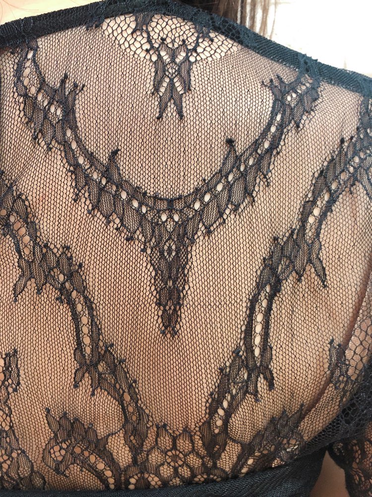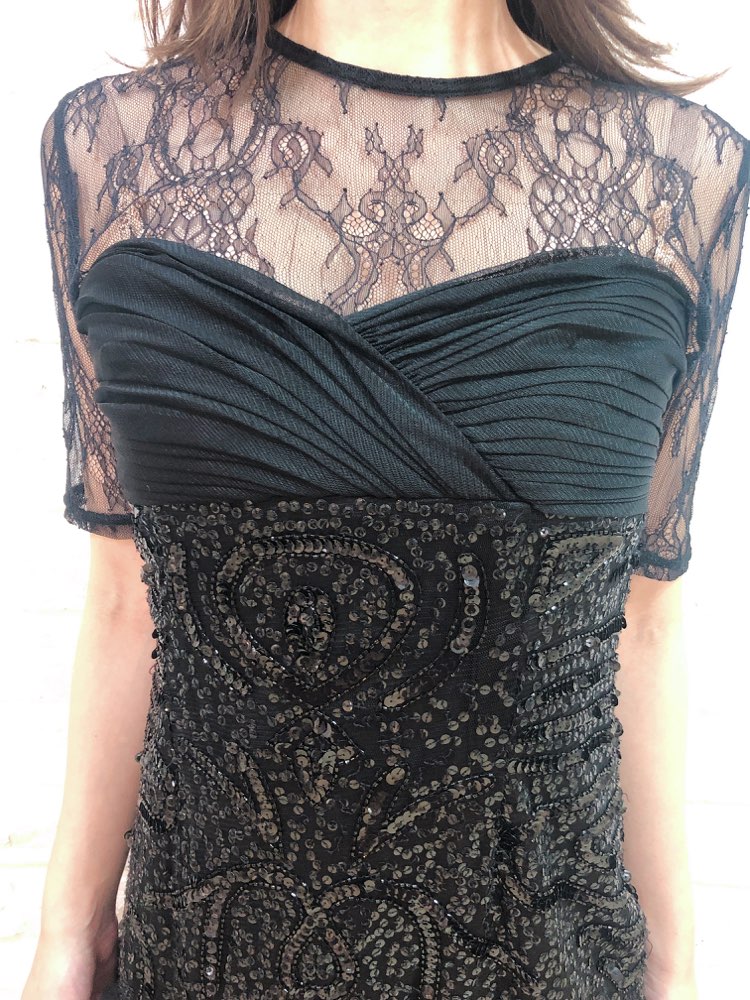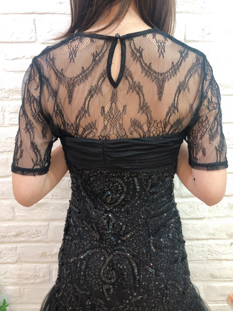 お召し物の中に着ていただくタイプのレース生地で華やかな印象の黒色のボレロです。華やかな装いにもぴったりの一品。幅広いシーンやドレスにも相性抜群です。
