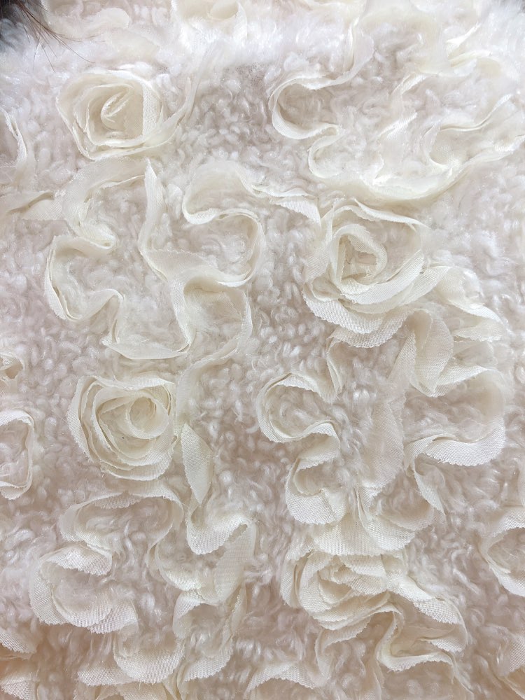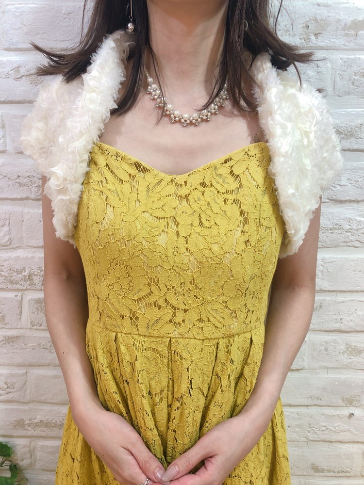 袖が短めのデザインで、スッキリとした印象のファーボレロです。バラ柄のファーが可愛らしい印象に仕上げ、女性らしい魅力を引き出してくれます。シンプルですが、華やかな装いにもぴったりの一品。 幅広いシーンやドレスにも相性抜群です。