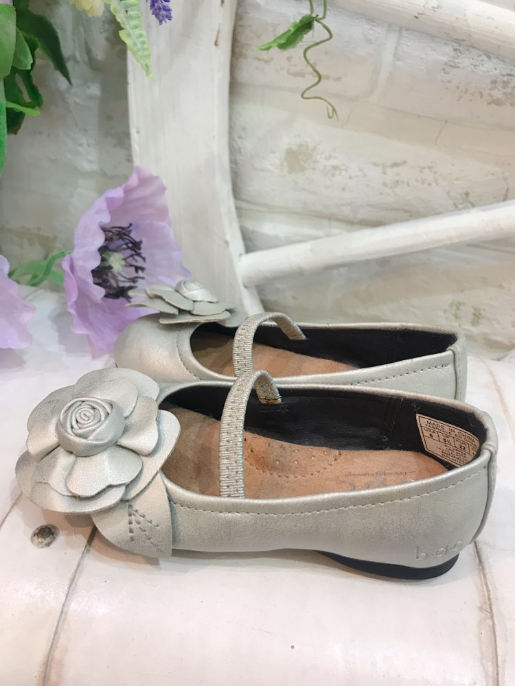 メタリックグレー フラワーシューズ13㎝