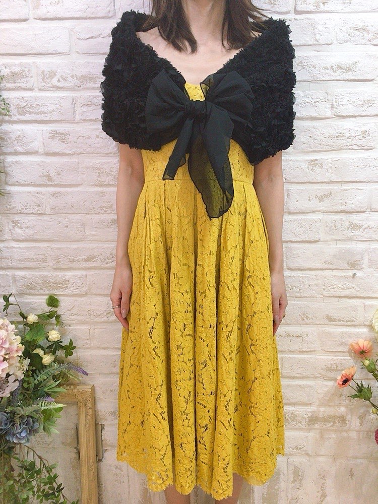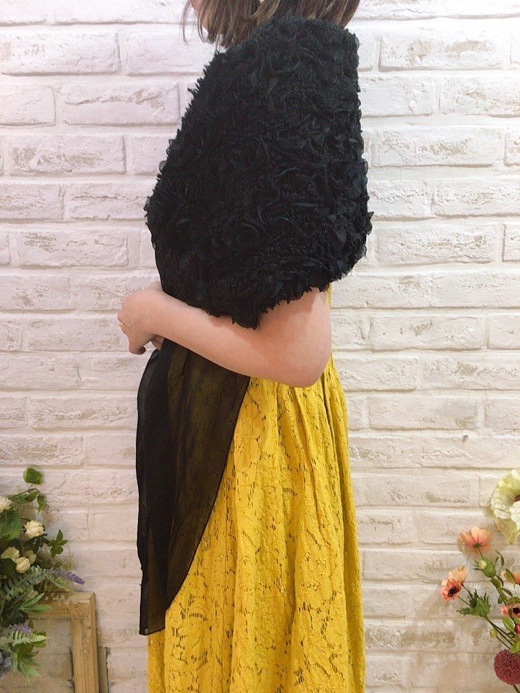 シフォン素材に小さな薔薇がついているので華やかな印象になります。結婚式、パーティや同窓会などにもおすすめです。