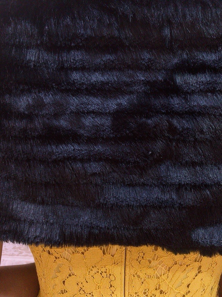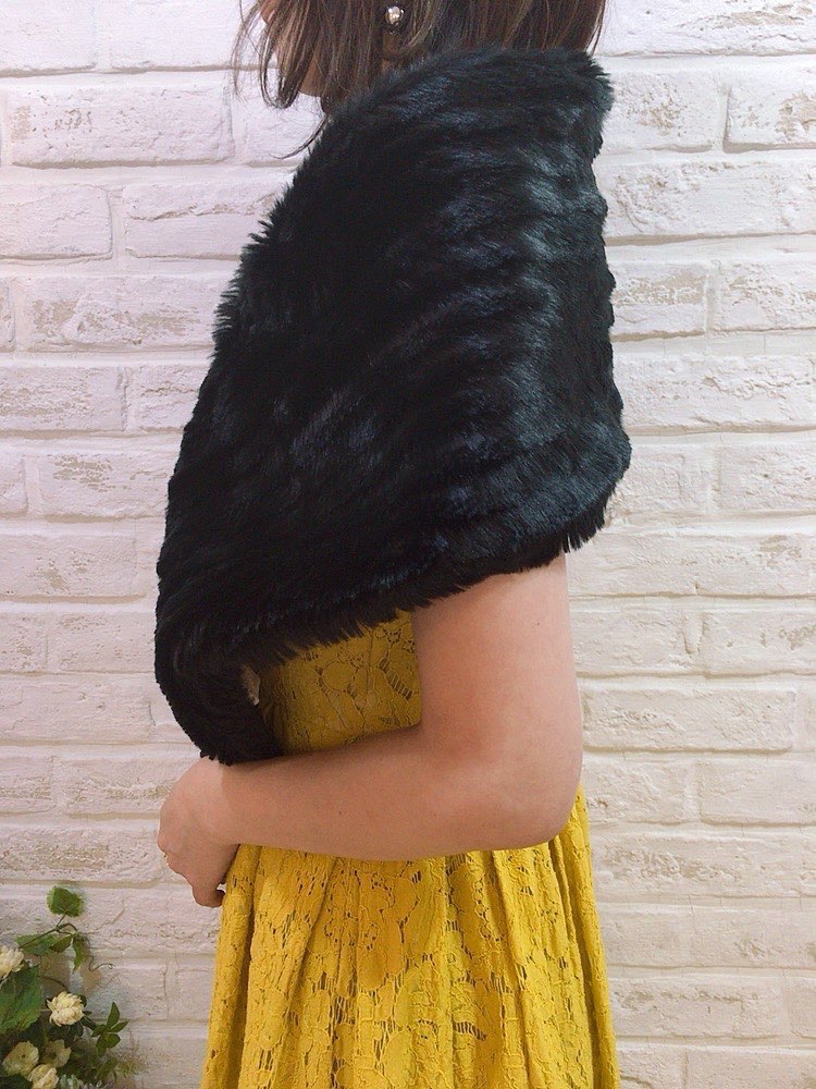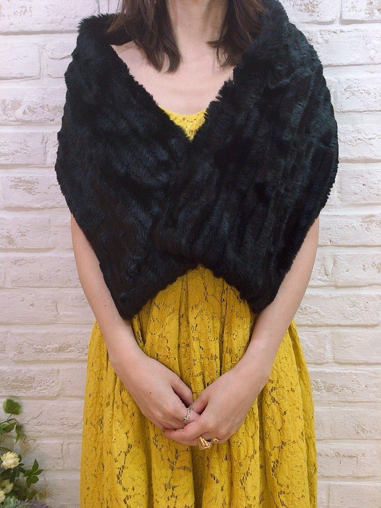 気品ある雰囲気にドレスアップを叶えるブラックのストール。たてしまラインが入ったファーなのでふんわりとした印象になり、